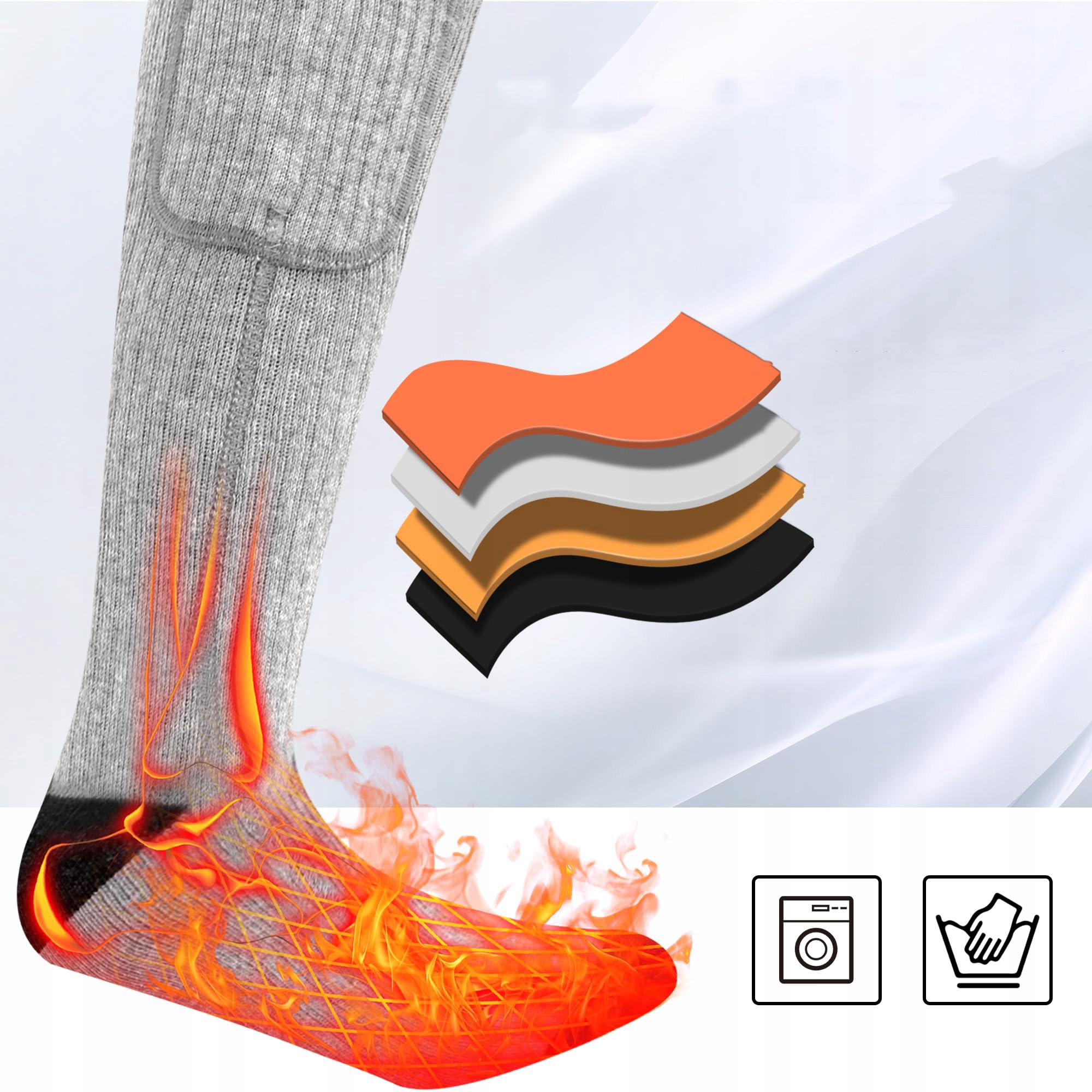 Шкарпетки з електричним підігрівом мають вбудовані нагрівальні елементи, а зона нагріву на підошві стопи швидко нагрівається та виділяє тепло, сприяння кровообігу в стопах. Невидимий нагрівальний дріт забезпечує вашим ногам більший комфорт. Зберігайте всю стопу в теплі під час циклу нагрівання, одягнувши ці теплі зимові шкарпетки.