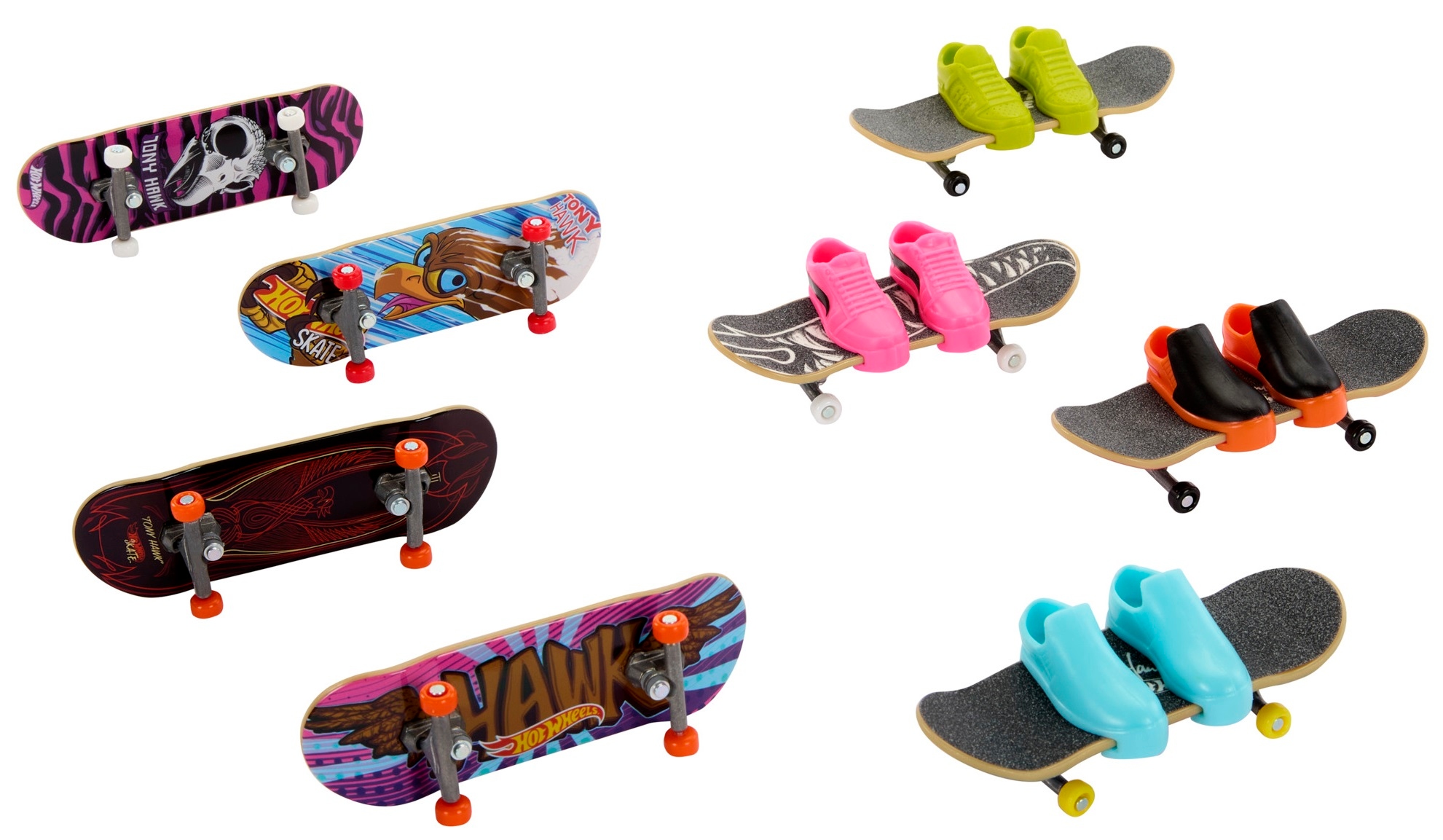 - Пориньте у світ епічних трюків із колекцією скейтбордів і взуття Hot Wheels Skate із цим набором із 8 скейтбордів і 4 пар взуття на тему Тоні Хоука. < /li>
