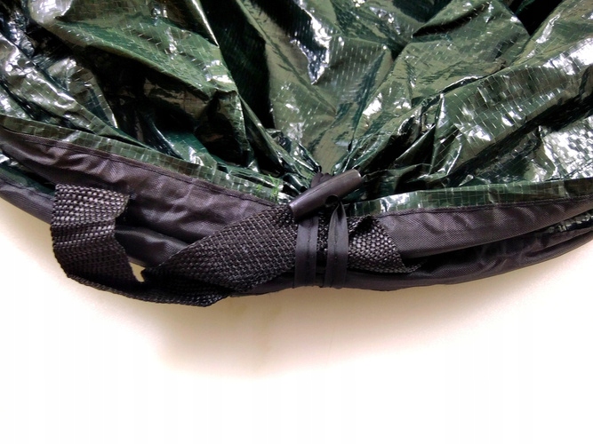 Він виготовлений з міцний брезент і сталевий дріт. Дві ручки дозволяють зручно переносити його, коли він повний, і вішати на гачок після використання.