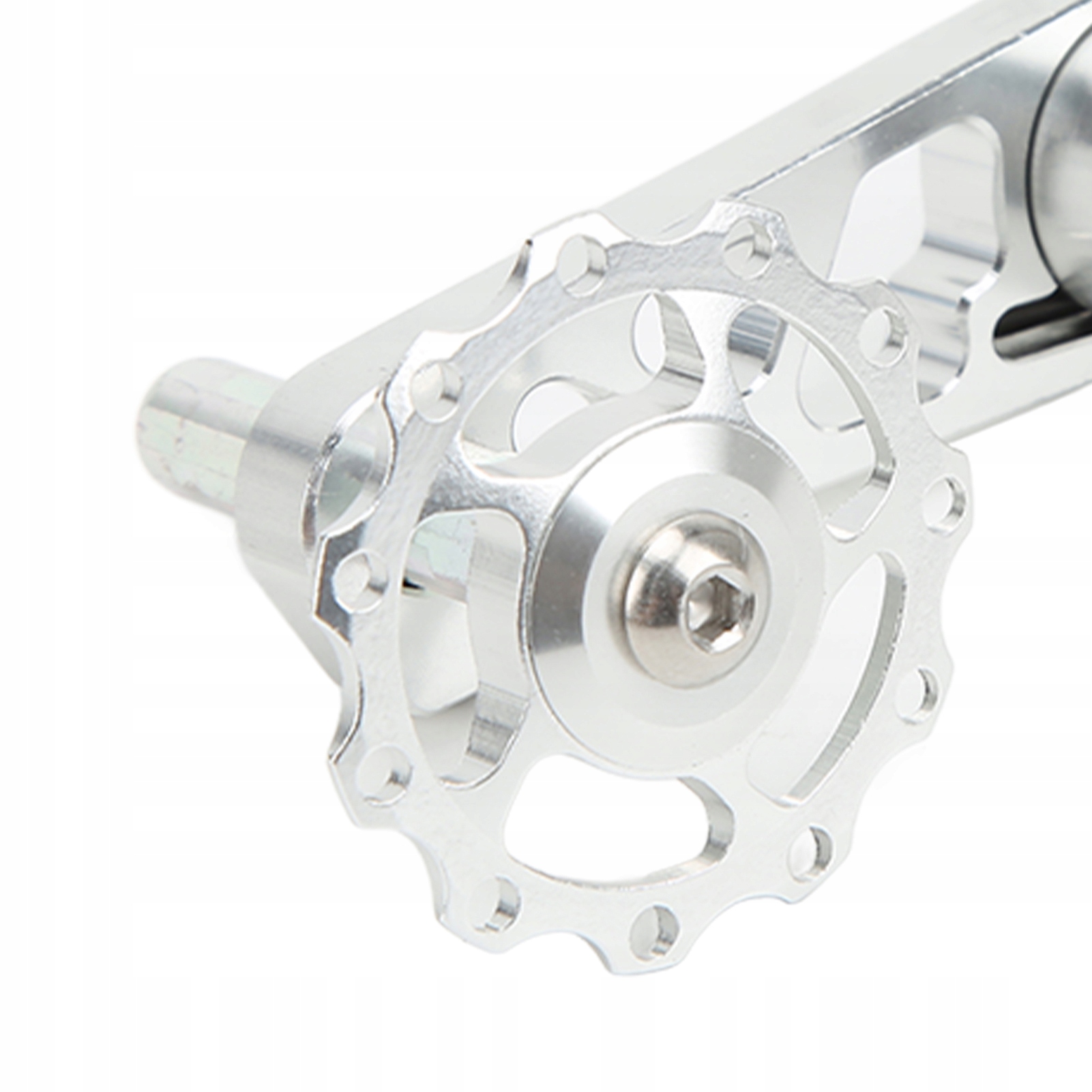 Переваги: відмінна якість виготовлення, повна точна обробка з ЧПК, колір анода, знак лазерного гравіювання, опорний вал, можна поєднати з різними напрямними колесами, направляюче колесо зазвичай має 11 зубів, але також може мати 13 зубів
