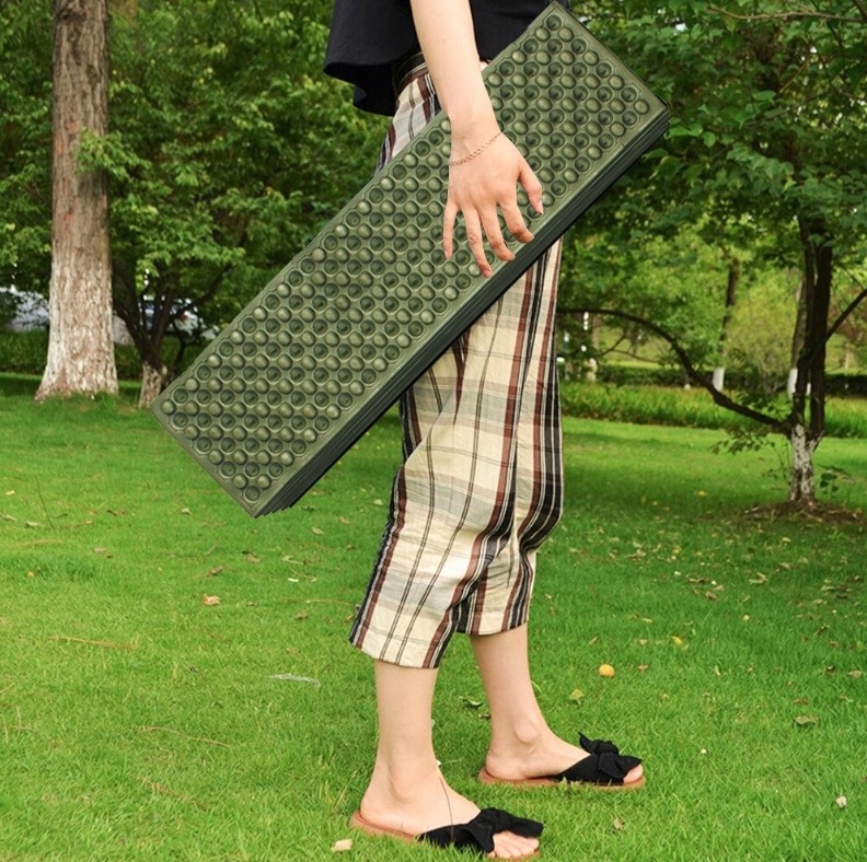 - На кемпінгу та пікніку, як зручне сидіння на траві чи землі. 4 Крім того, він має спеціальні вкладки, які підвищують його м'якість і товщину, забезпечуючи ще більший комфорт.