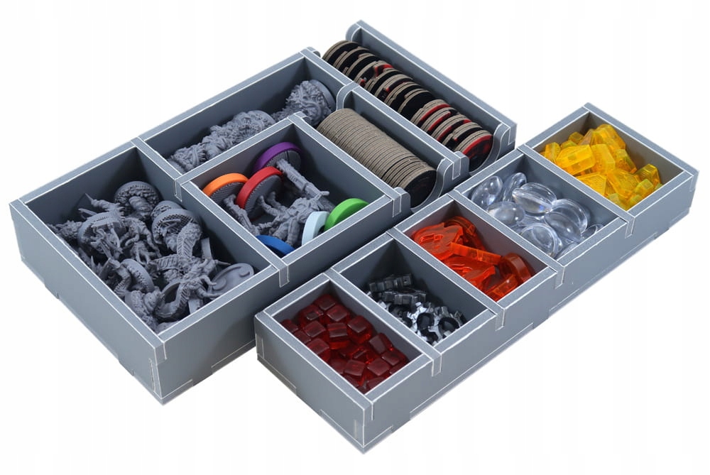 Складені організатори космосу забезпечують ергономічне розташування компонентів гри та збільшують задоволення від гри. Відсіки для елементів можна використовувати під час гри та спростити її підготовку та очищення після гри.