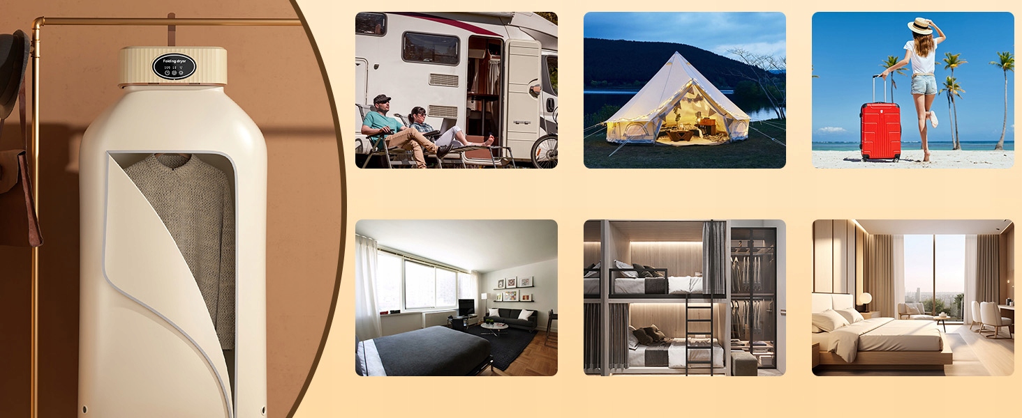 ✅Портативний і зручний:Цей міні Сушарка для білизни ідеально підходить для тих, хто живе в невеликих квартирах, гуртожитках або кемперах, а також для тих, хто збирається у відпустку або в похід. Він легкий і його легко носити, що робить його ідеальним рішенням для сушіння.