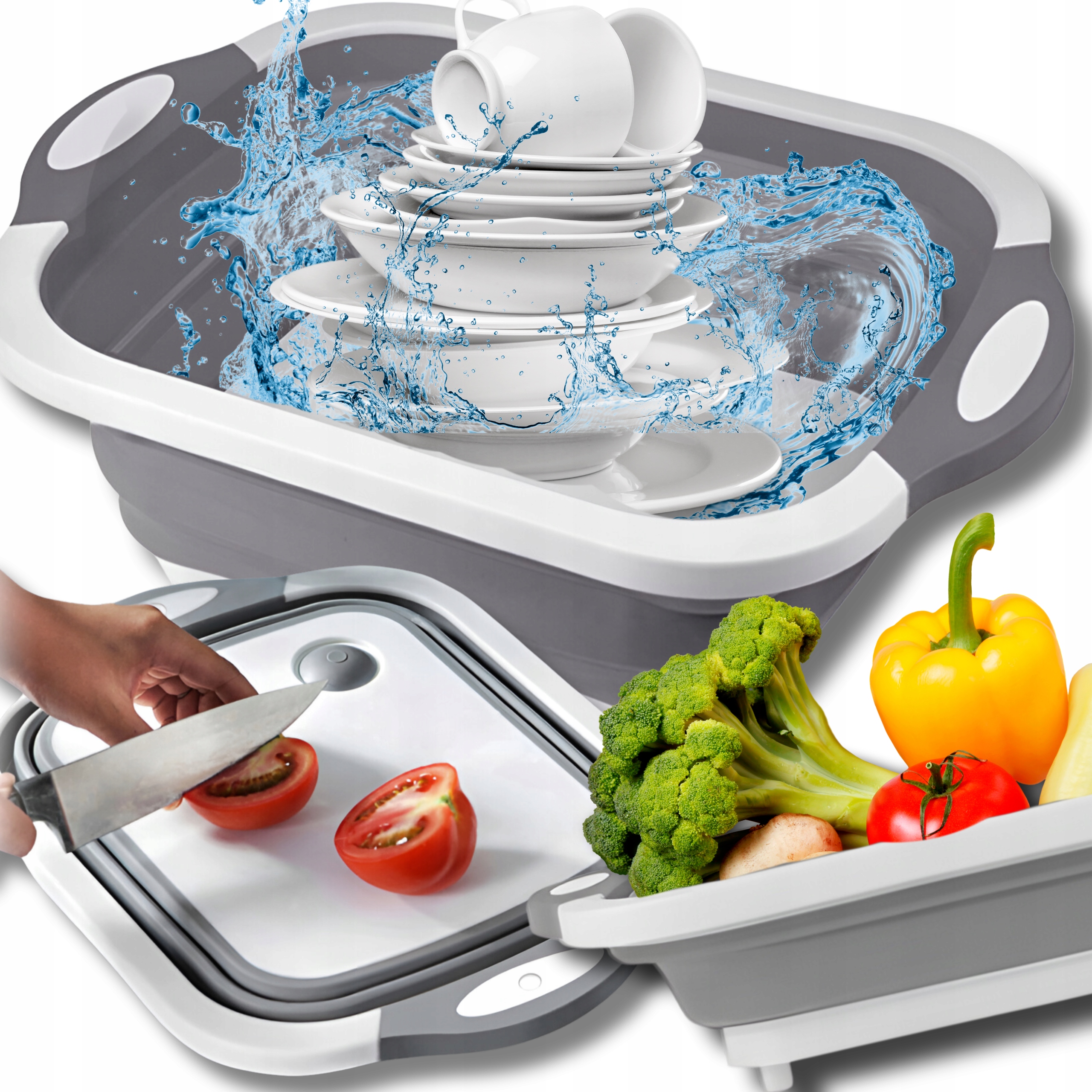⚡⚡⚡СИЛІКОНОВА СКЛАДНА ЧАША З ДРЕНОМ ЧАША РІЗАЛЬНА ДОШКА 6,5 Л XXL⚡⚡⚡