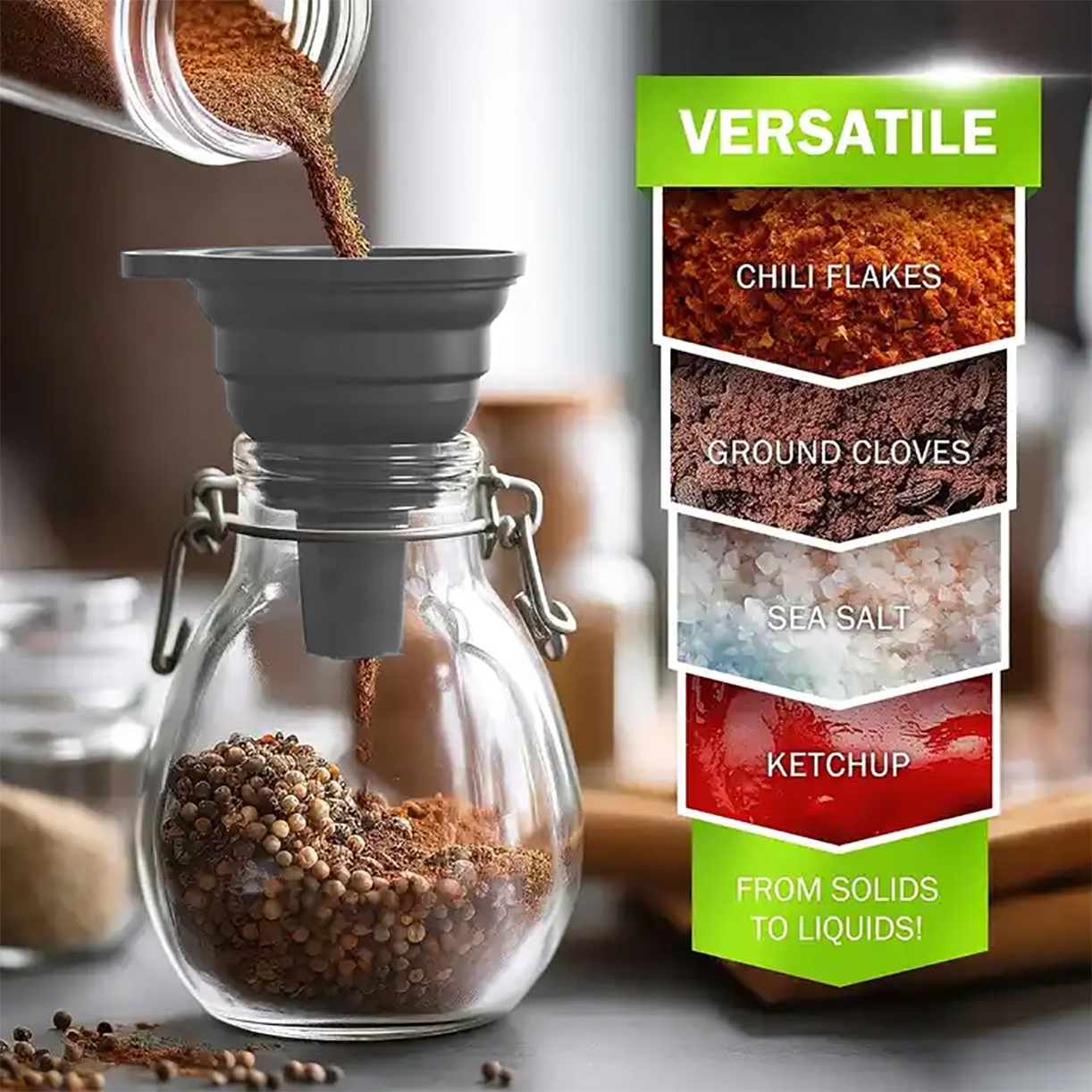 Відтепер ви не проллєте жодної краплі. Круглий наконечник воронки допоможе вам наливати рідини або маленькі сухі інгредієнти в контейнери різного розміру.