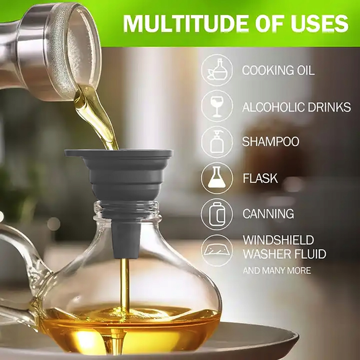 Практична воронка, якої не може бути на кухні, у ванній чи гаражі. Він схожий на гармошку, його можна складати та розкладати за потреби.