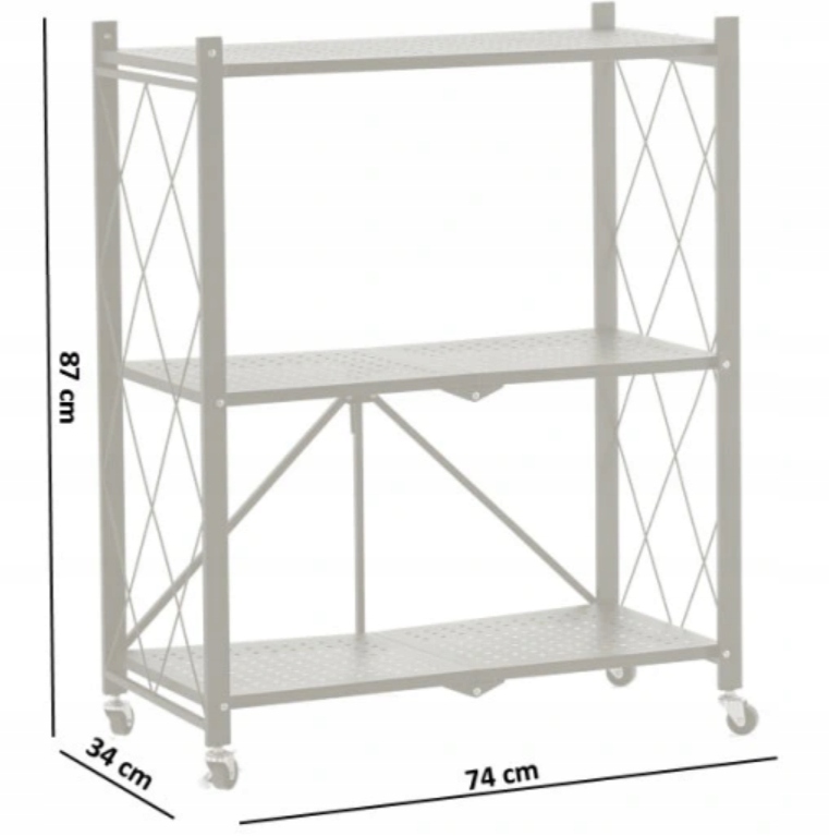 Складна полиця — ідеальне рішення для вашого дому! Завдяки використанню коліс його установка буде надзвичайно легкою. 2 колеса оснащені замками, що дозволяє залишати полицю в будь-якому місці. Полицю також можна повністю скласти, що полегшує транспортування та зберігання.
