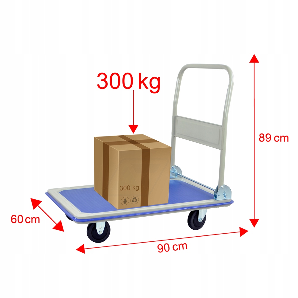 Має дуже міцну транспортну платформу розміром 90 x 60 см. Використовуватиметься на складах, в магазинах, майстернях і скрізь, де необхідно перевозити різного роду вантажі.