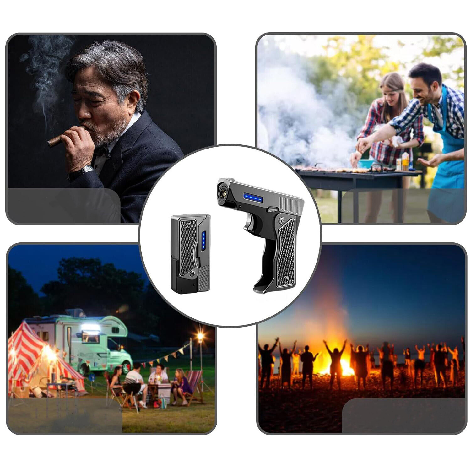 🔥 Два типи полум'я: один пристрій подвійного призначення. Є два режими полум'я на вибір: Прямий синій полум'я та подвійна дуга, що відповідають різним кнопкам. Ви можете використовувати нашу запальничку в будь-яких умовах.