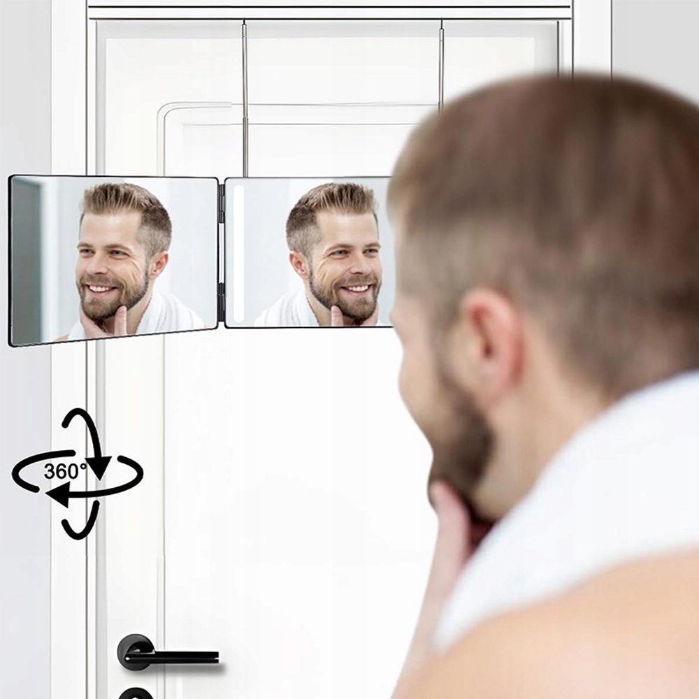 Ви можете повісити складне дзеркало на будь-які двері та відрегулювати його на ідеальну висоту за допомогою телескопічної штанги. Це дозволяє вам стояти й перевіряти, чи ваша зачіска та макіяж ідеальні з усіх боків.