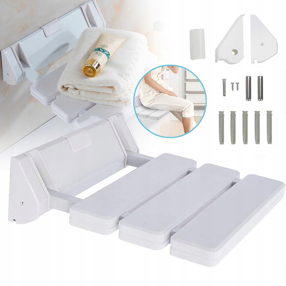 🚿Складне крісло для душу, настінне кріплення:великі металеві монтажні пластини забезпечують надійне утримання. Численні шурупи забезпечують хороший розподіл навантаження на стінку душової кабіни.