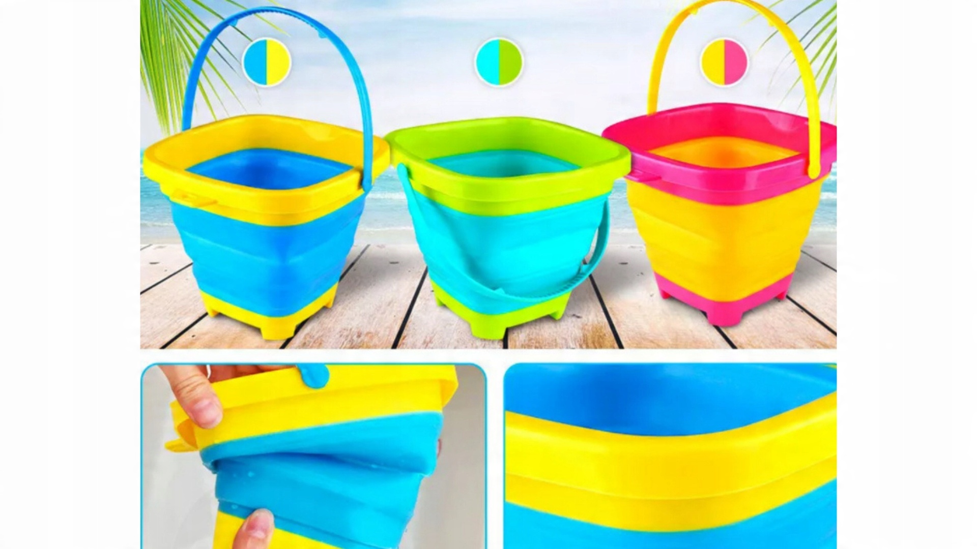 3️⃣ Практичність: відро легко чистити та зберігати, а його гнучкість дозволяє складати навпіл і зберігати в невеликому просторі. Це також продукт, який можна брати з собою під час подорожі, тож діти завжди матимуть іграшку, з якою можна гратися на пляжі чи в парку.