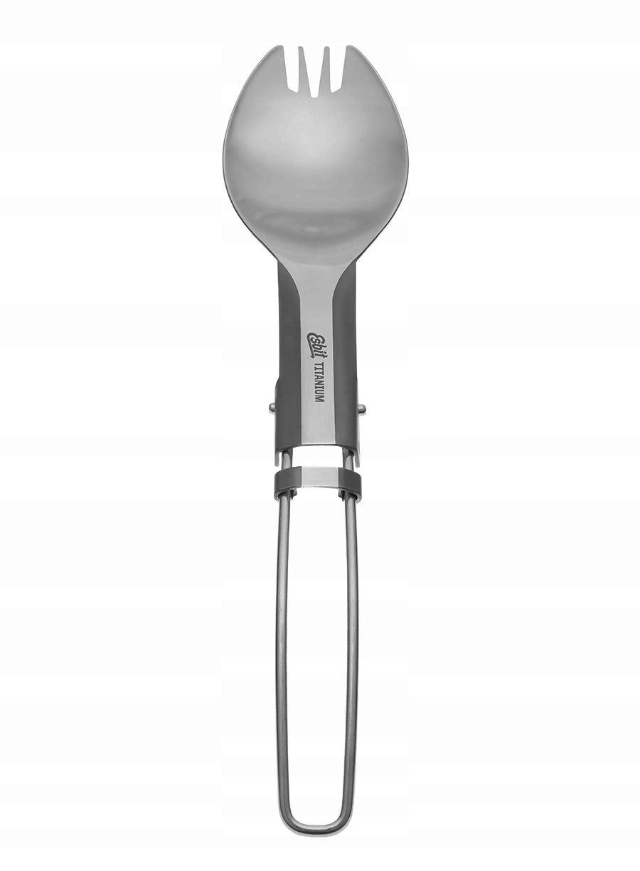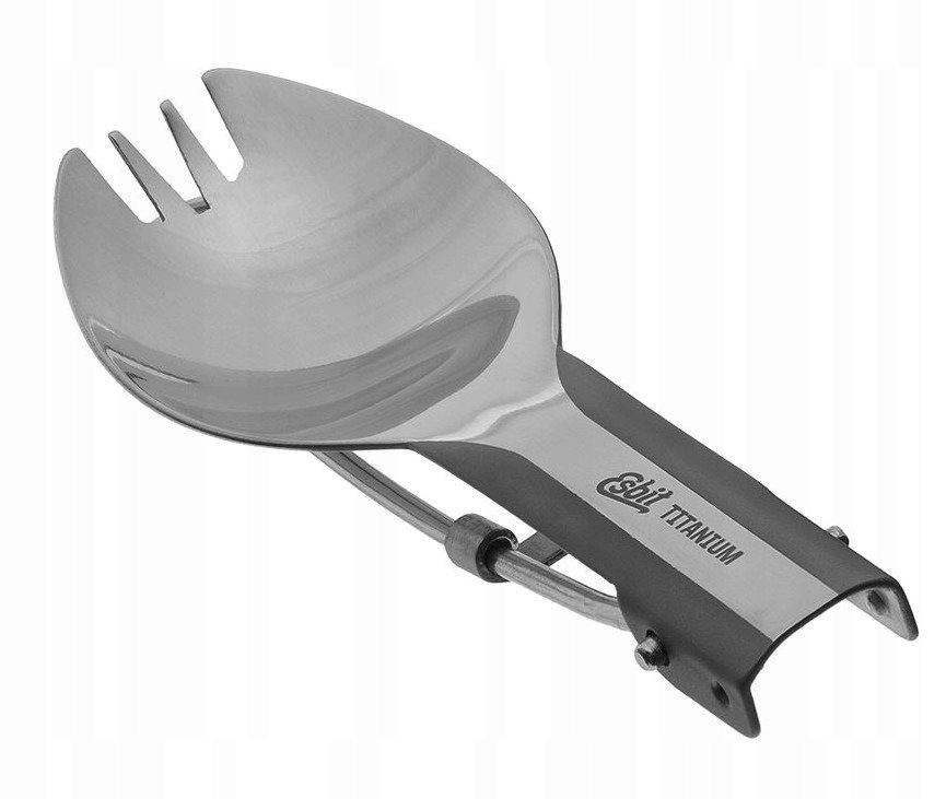 Esbit Titanium Spork виготовлено з титану, що робить його дуже легким. Складана ручка дозволяє помістити його в найменше відділення вашого рюкзака або навіть у найменшу чашку. Розсувний замок захищає ручку від автоматичного складання під час використання.