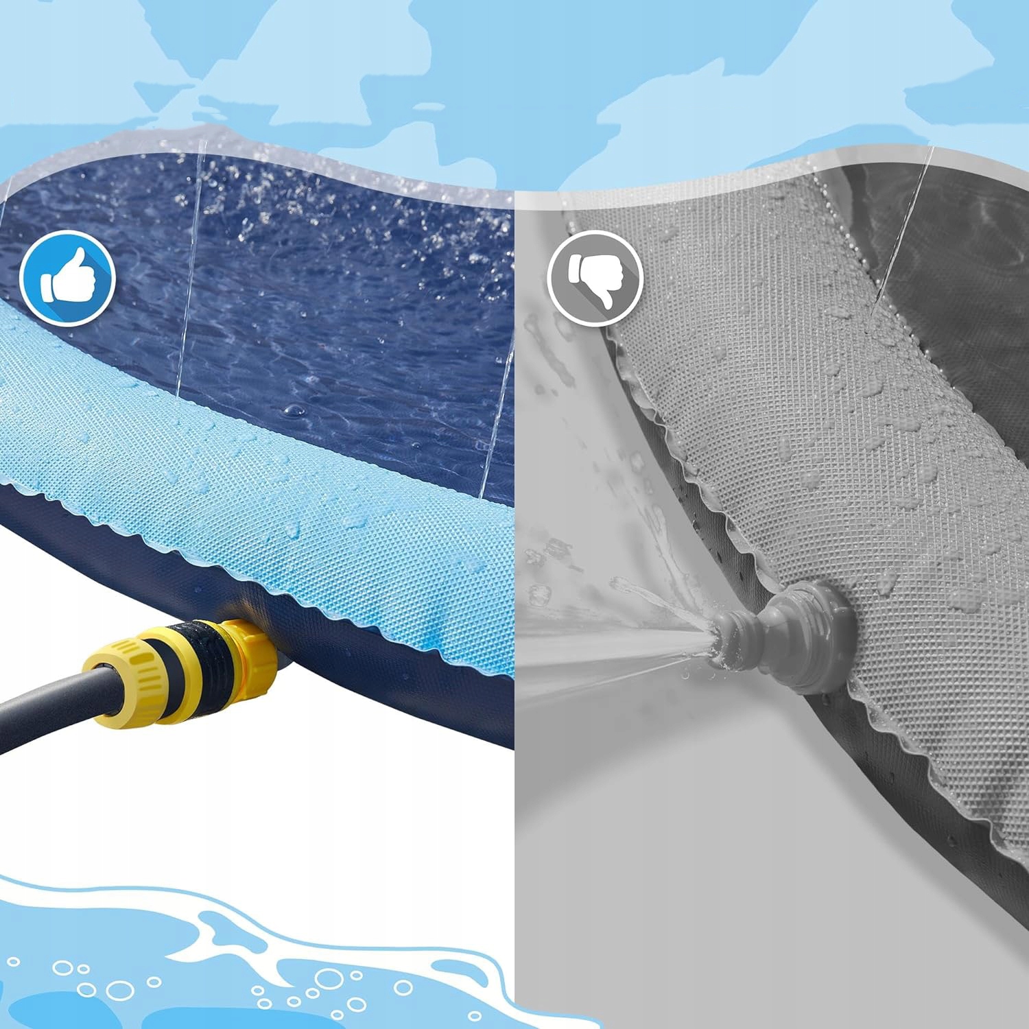 🐕🐕 Більш міцний басейн для собак: Цей басейн для собак створено зроблений з товстого ПВХ (0,58 мм) і витримує як лапи, так і спеку. М'який матеріал дозволяє вашій собаці легко стрибати всередину та виходити з неї без ризику поранитися об гострі краї. Однак ви обов’язково захочете підстригти лапи вашої собаки, щоб продовжити термін служби башмака-розпилювача.