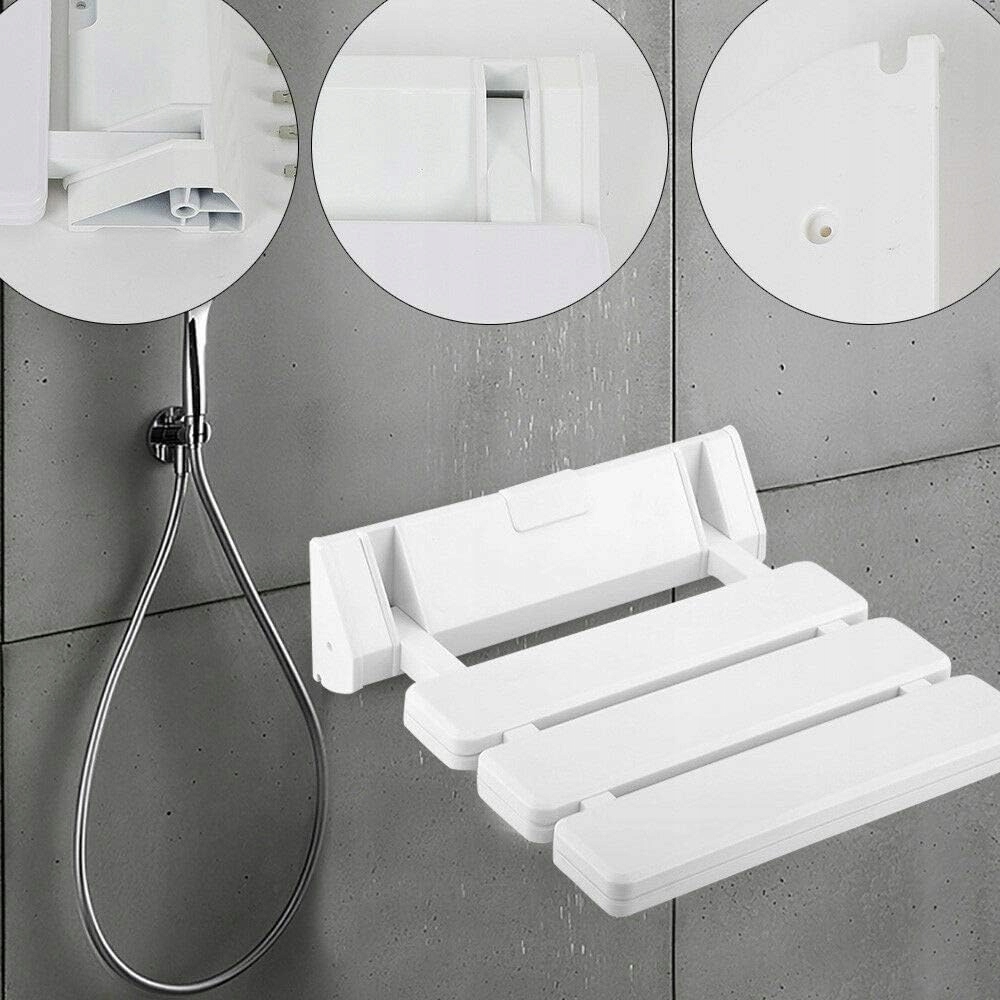 🛁🛁🛁 Настінне кріплення: Основа сидіння для душу, що розкривається посилений великими підшипниками. Екологічний дизайн, безпечний і надійний, його можна скласти до стіни, коли він не використовується, економить простір і збільшує використання простору; Розмір цього складного сидіння для душу становить 32 x 33 x 3 см.