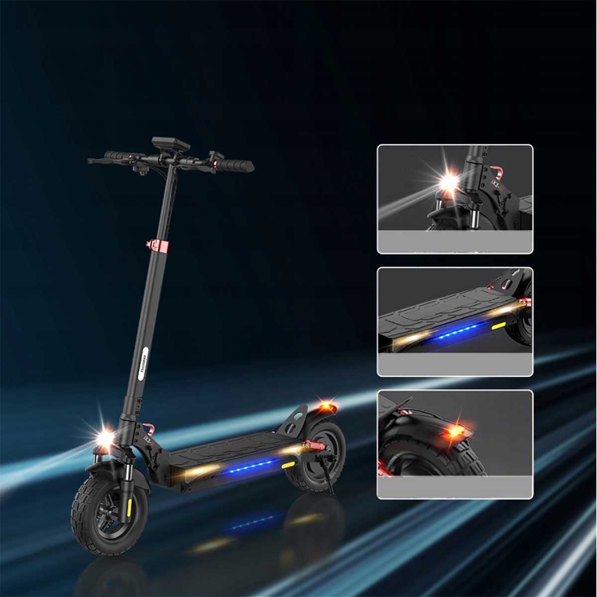 10-дюймові шин безк без каналів, призначені для їзди в різних районах, від міських вулиць до наземних доріжок. У поєднанні з передніми та задніми подвійними амортизаторами IX3 гарантує ідеальний досвід водіння, особливо під час подорожі на роботу в передмісті.
