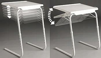 Багатофункціональний, легкий складаний стіл. Стільниця має регульований кут нахилу, що дозволяє встановити її в найбільш зручне положення. Ніжки дозволяють регулювати висоту. Все це зручно складається.