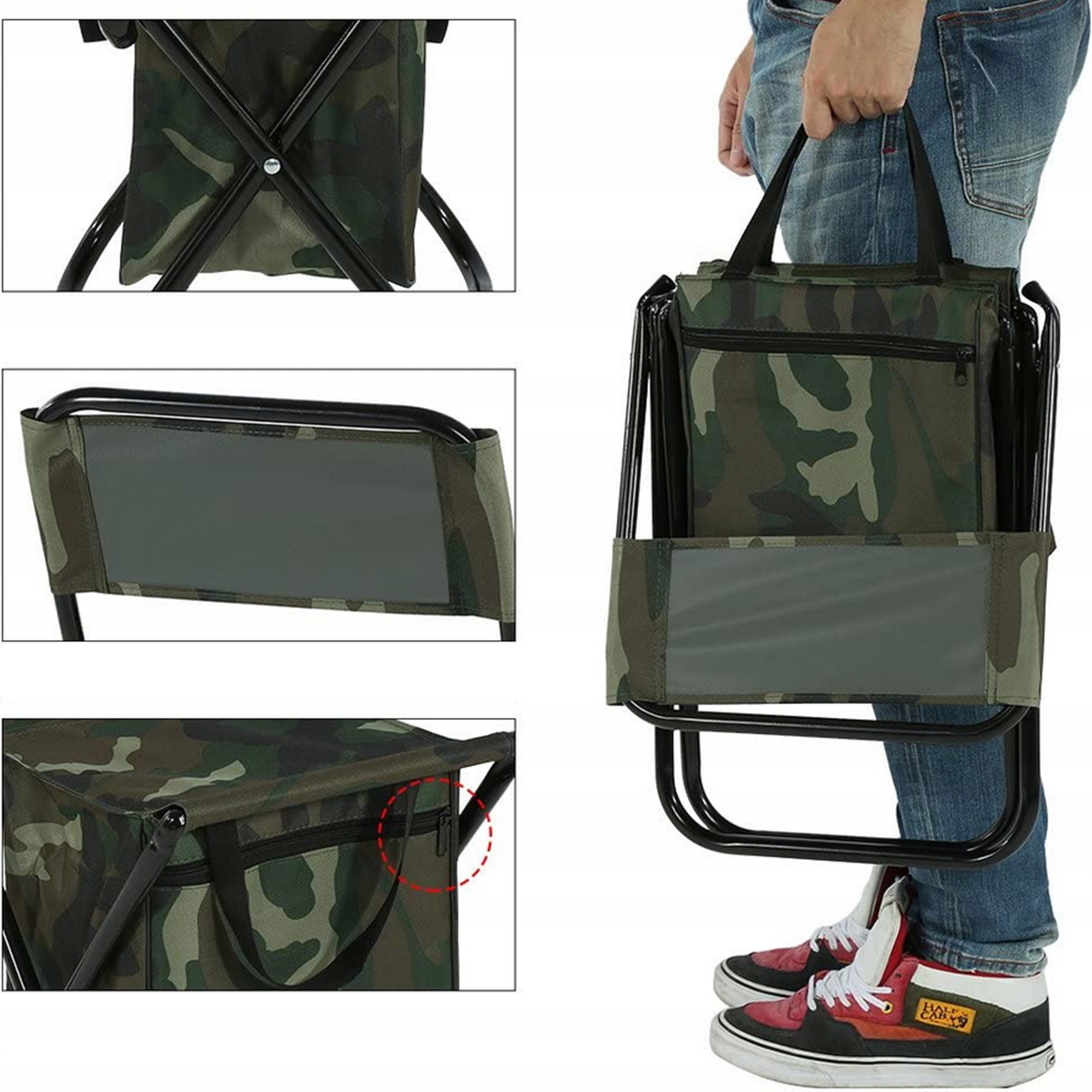 - A chair equipped with a backrest and a zipper storage bag