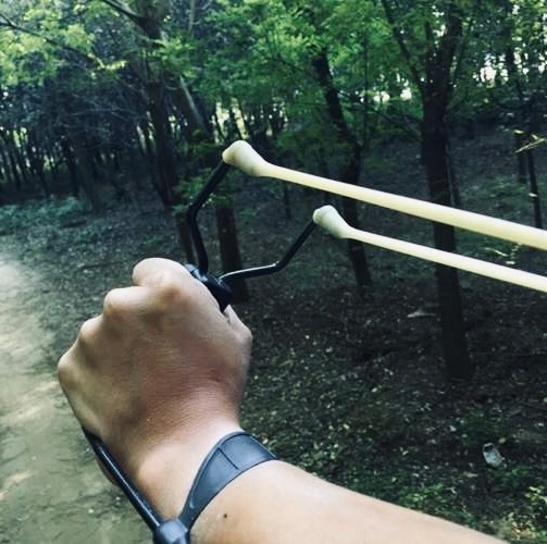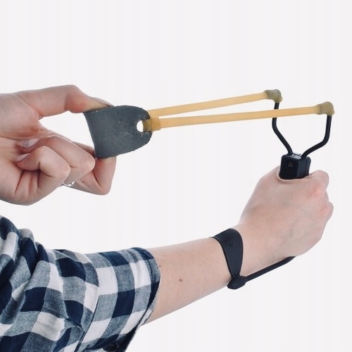 Ергономічна неслизька ручка була спеціально розроблена, щоб рогатка ідеально трималася в руці. Натяжна рогатка виконана з міцних гумових і шкіряних елементів, що забезпечує міцний хват і точні кидки.