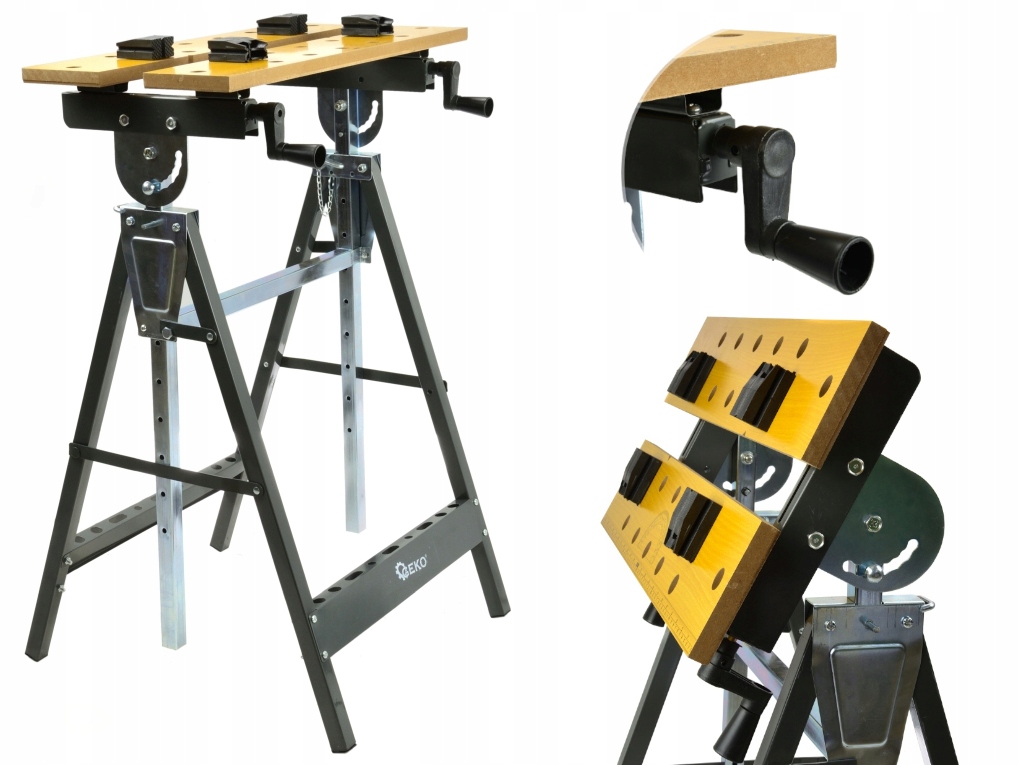 Високоякісний верстак (craft) від відомого бренду GEKO. Конструкція столу дозволяє регулювати положення стільниці та її ширину під форму предмета, який ви хочете на ній розмістити. Крім того, стільниця оснащена реверсивними затискними губками, які дозволяють кріпити на столі предмети різної форми.