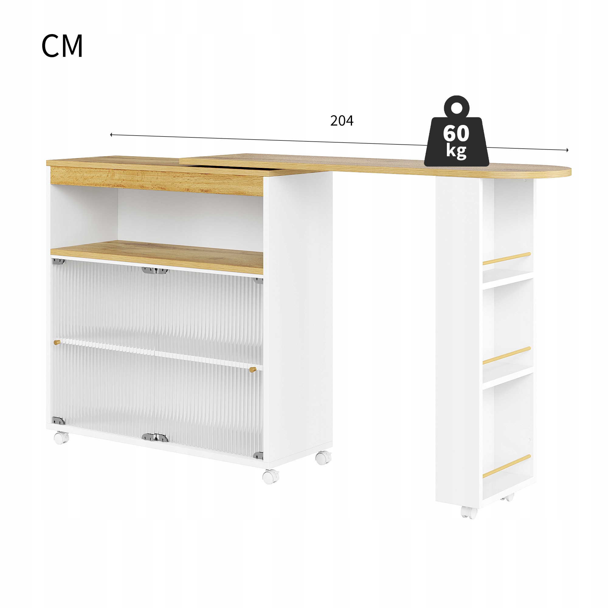 розкладний стіл з місця для зберігання, сучасний рухомий барний стіл, телескопічний стіл із світлодіодами, високий стіл, стіл для бістро, високий стіл, кухонний острів, стіл бістро, великий простір для зберігання, білий (138-204 × 39 × 105 см)