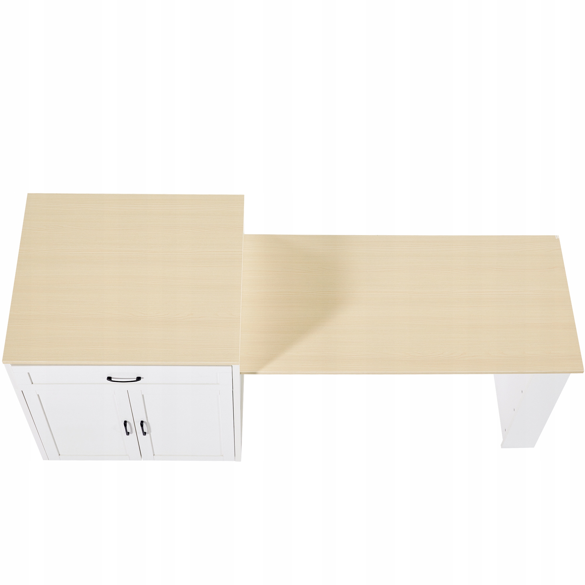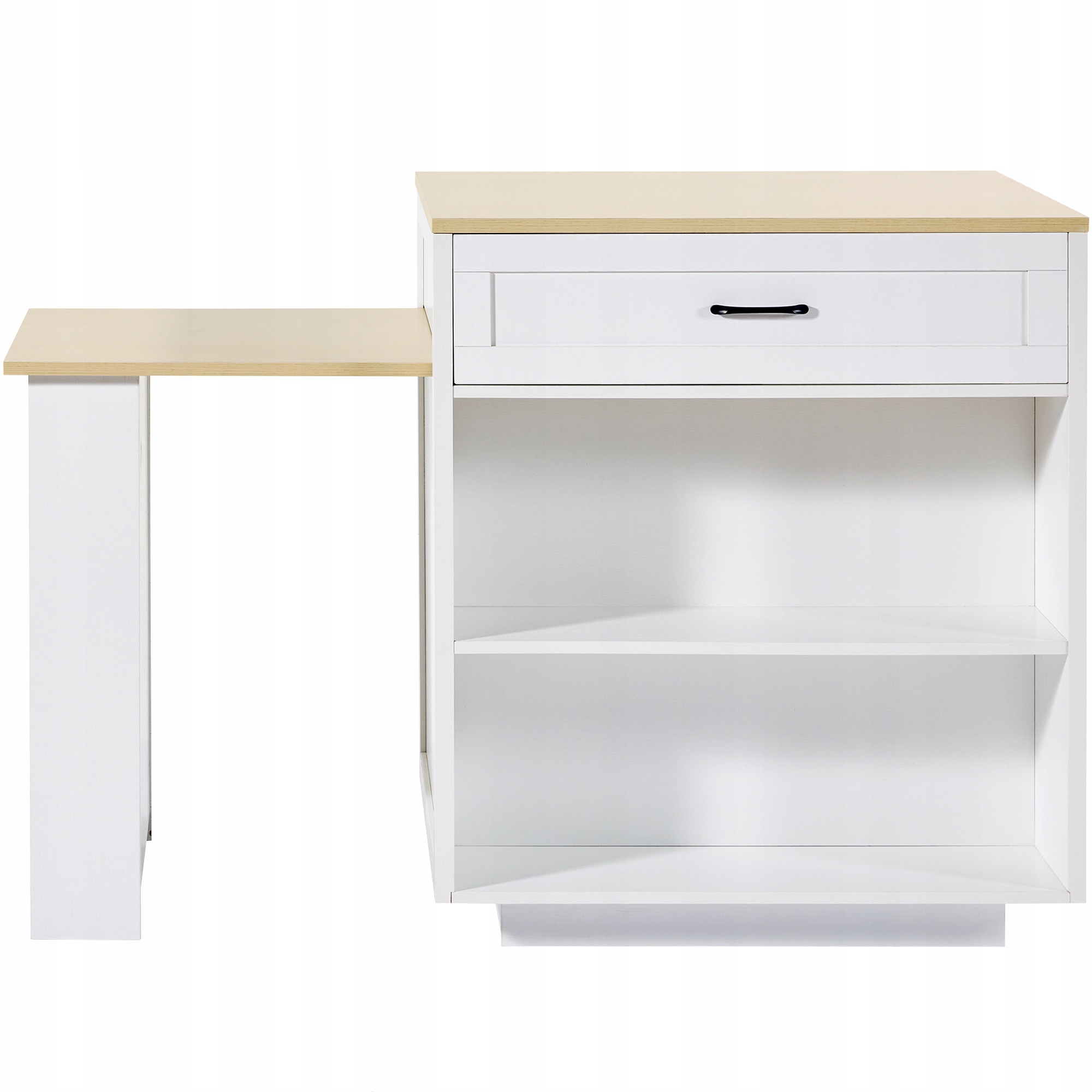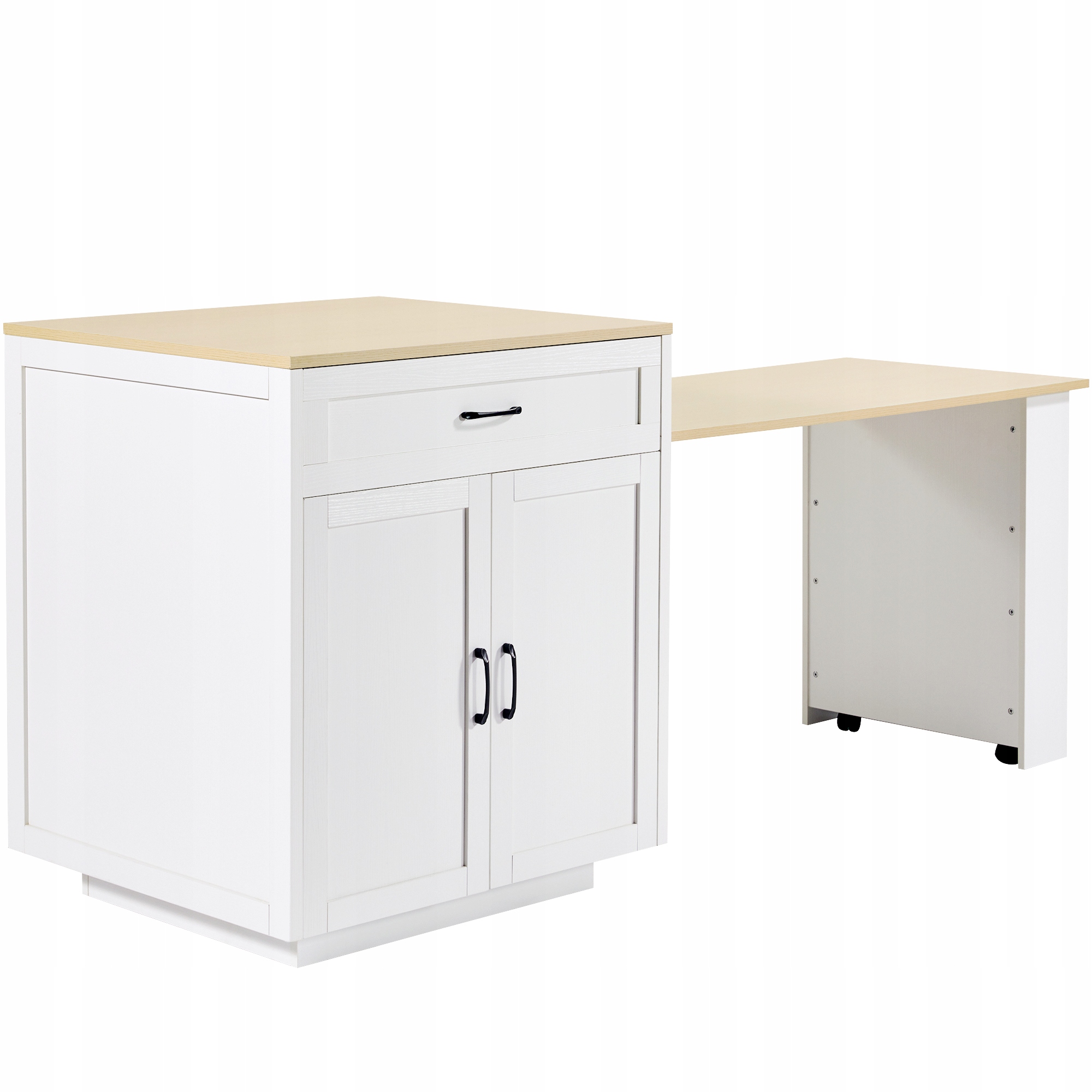 Складений штанговий стіл із простором для зберігання (133-202 × 70 × 93,5 см), з 2 ящиками та 2 розділами, складним кухонним столом з островом для 2-6 людей, кухонною коляскою з бічними поличками, білими 2>