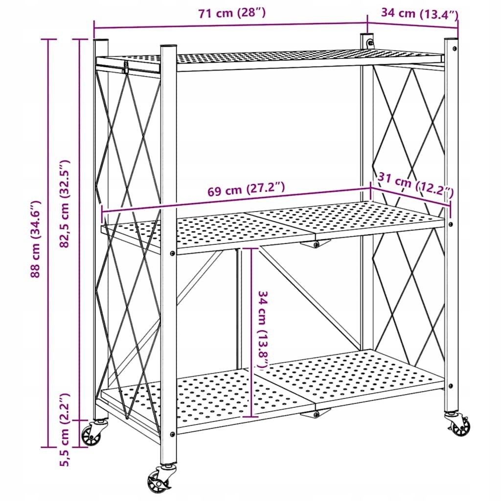 Складова стійка з колесами, чорний, 71x34x88 см, Стал Лумарко!