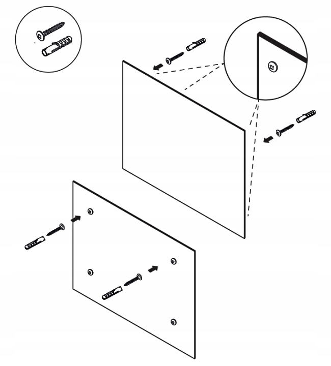- щоб повісити дошку на стіну з гіпсокартону, використовуйте дюбелі для гіпсокартону (дюбелі не входять до складу плати).