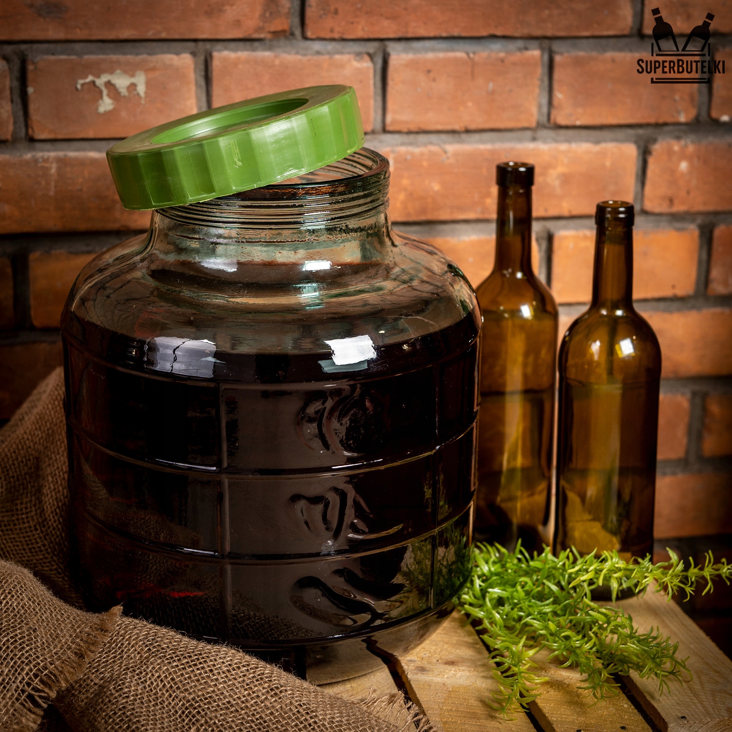 Банка 20 л для вина, лікерів і консервації. Використовується для зберігання продуктів харчування, квашення капусти та огірків, а також для зберігання алкогольних напоїв.