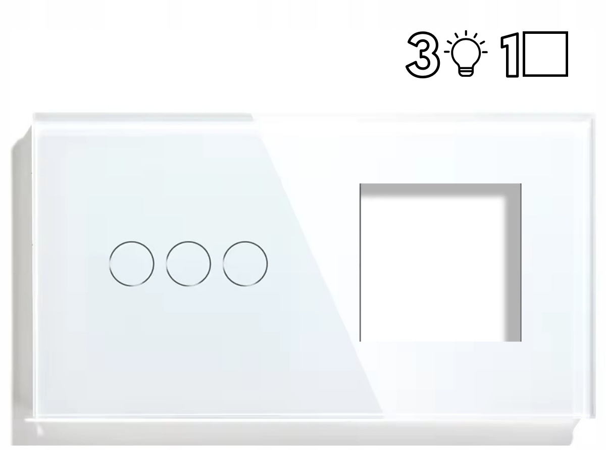 СКЛЯНА ПАНЕЛЬ ДЛЯ СЕНСОРНИХ МОДУЛІВ ПОДВІЙНА РАМКА 3G+1F РОЗЕТКА БІЛА