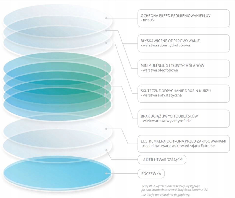 - Антивідблиски: багатошарові STAYCLEAN EXTREME УФ-антивідблиски.