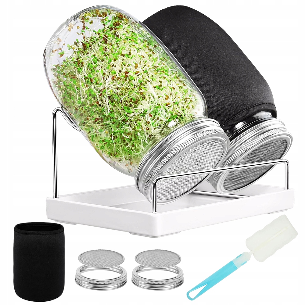 ✅ Набір включає всі аксесуари, необхідні для вирощування паростків. Набір включає 2 затінені кришки тканини, 2 скляні банки, 2 кришки з нержавіючої сталі, 1 лоток та 1 підставка (насіння не включені).