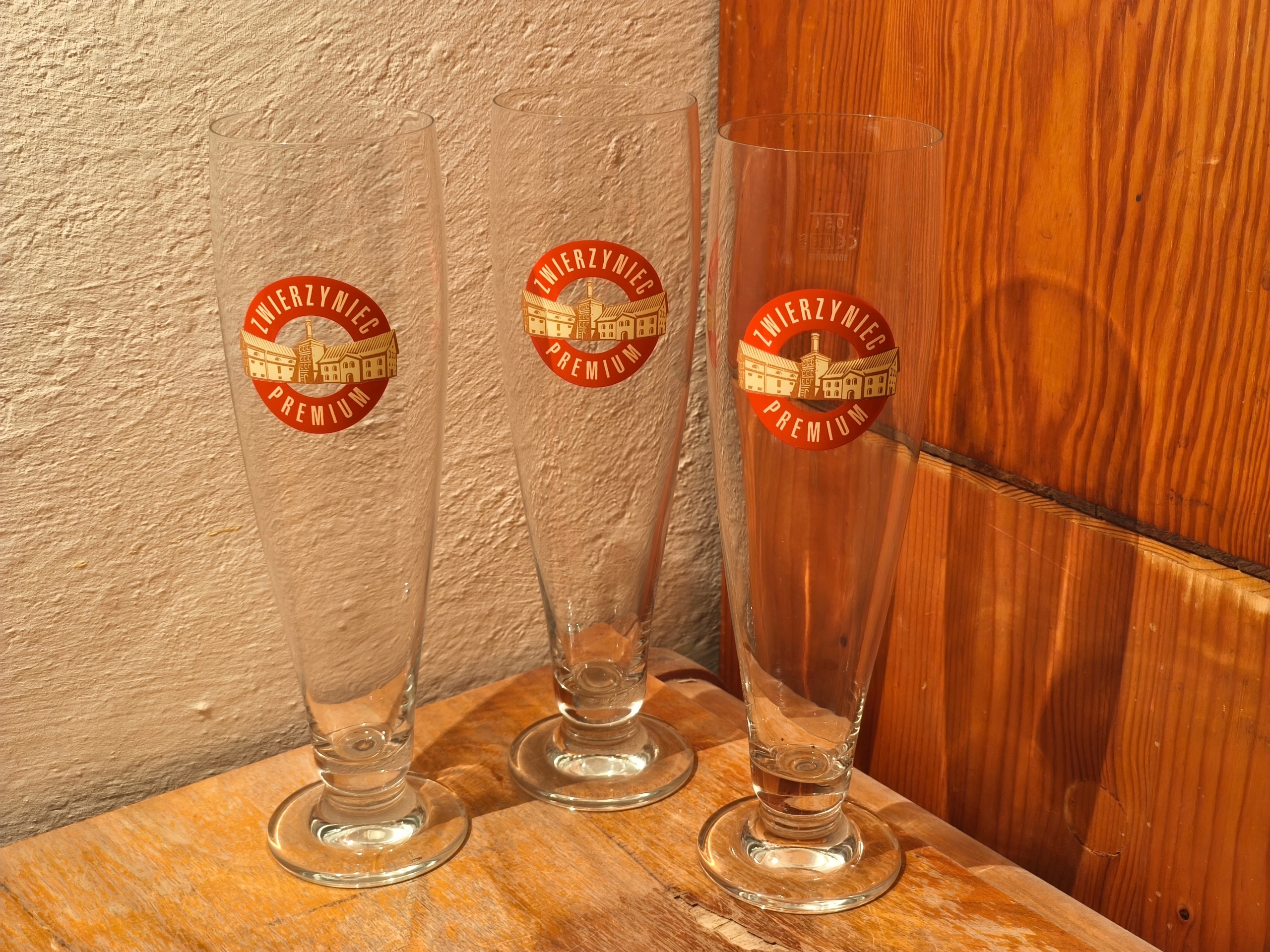 Тема продажу - це стара склянка для польського пива Zwierzyniec Premium.