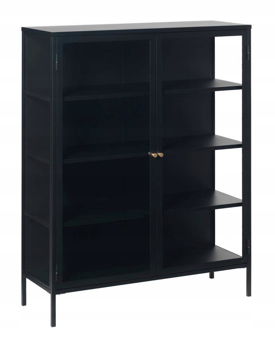 Шафа-вітрина висотою 140 см з двома дверцятами та однією полицею з чорного металу. Сучасний, індустріальний стиль.
