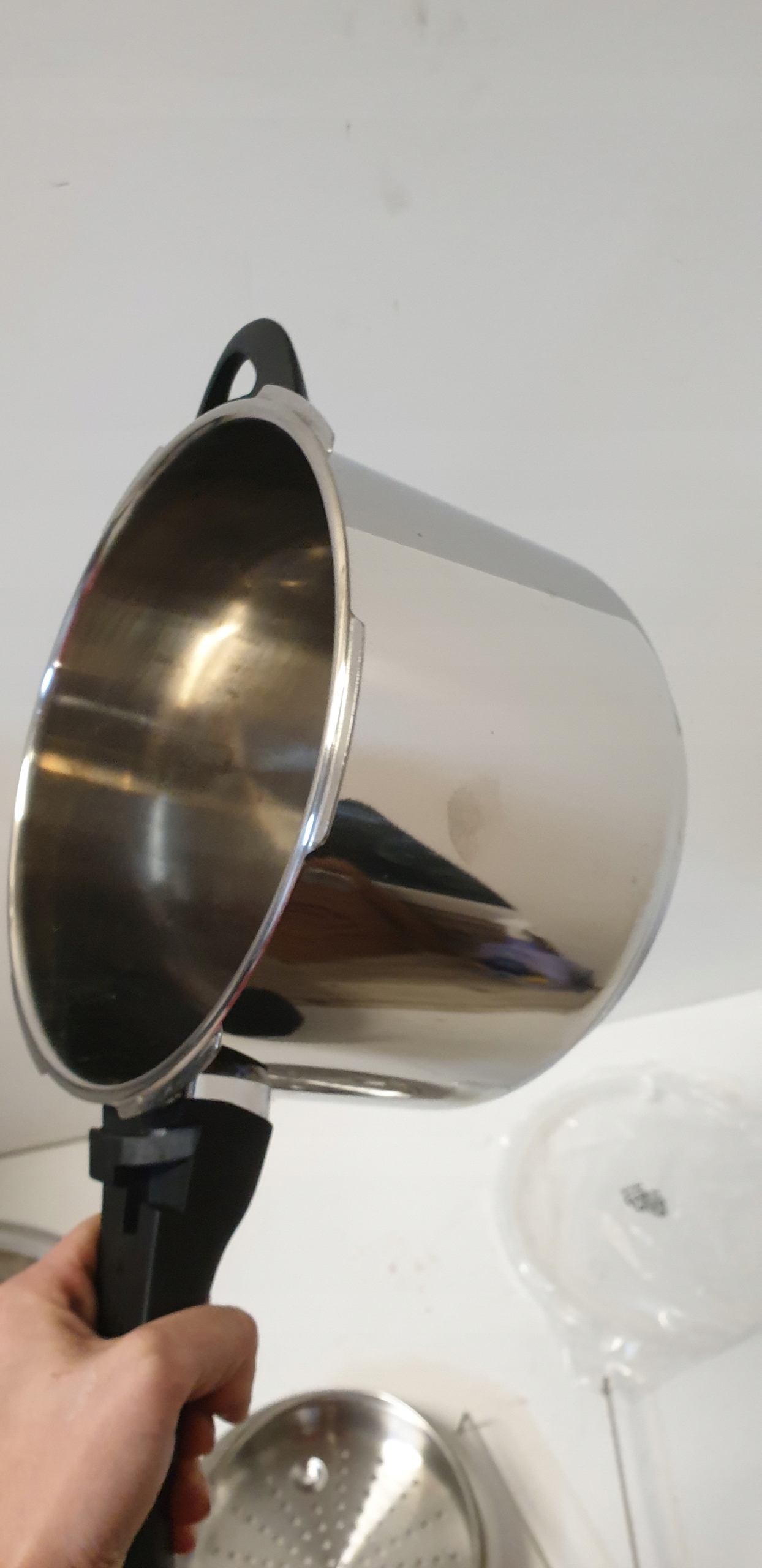 - Зручний чотирилітровий об'єм; має діаметр 22 см; клапан індикатора тиску, що забезпечує безпечне відкриття