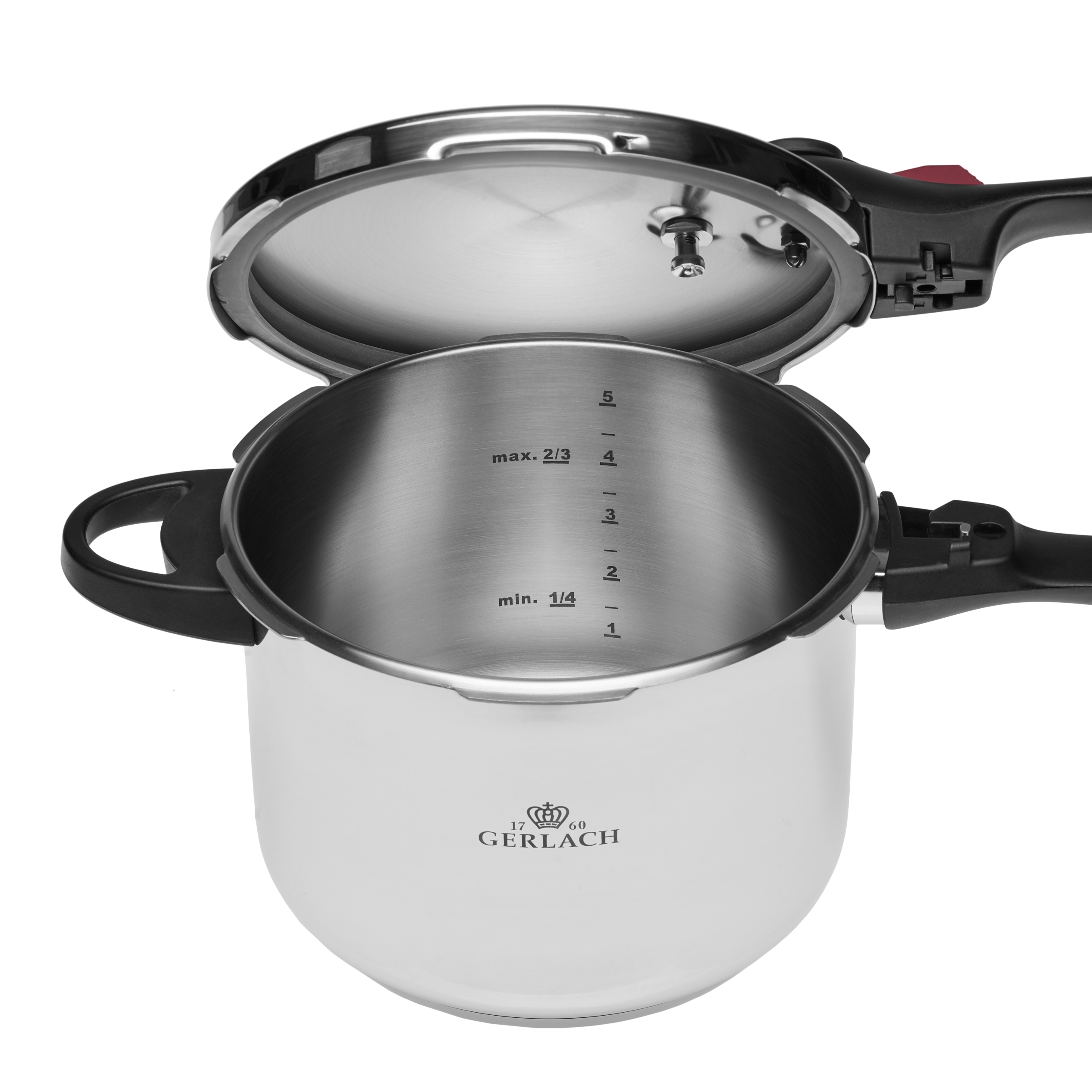 Скороварка виготовлена з нержавіючої сталі 18/10. Має тришарове дно, яке добре розподіляє тепло і підходить для всіх типів плит, включаючи індукційні. Всередині зручна мірна чашка. Оснащений двома ручками, що не нагріваються: основною та додатковою меншою, що дозволяє переносити посудину.