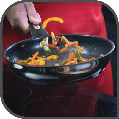 Відчуйте нову якість завдяки антипригарному покриттю покриття, посилене частинками титану, яке в три рази міцніше.