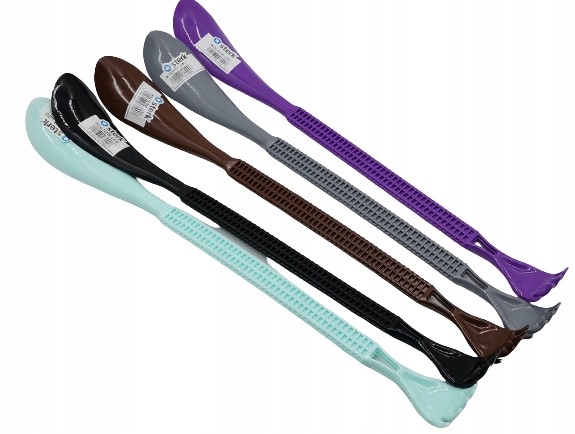 Виготовлений з високоякісного пластику. Закінчується ріжком для взуття з одного боку та дряпаком для спини з іншого. Почісування нею позитивно впливає на кровообіг і покращує загальний вигляд шкіри. Має розслаблюючу і розслаблюючу дію. Дряпанку/ріжок для взуття можна скласти (складається з трьох частин), тому займає ще менше місця.