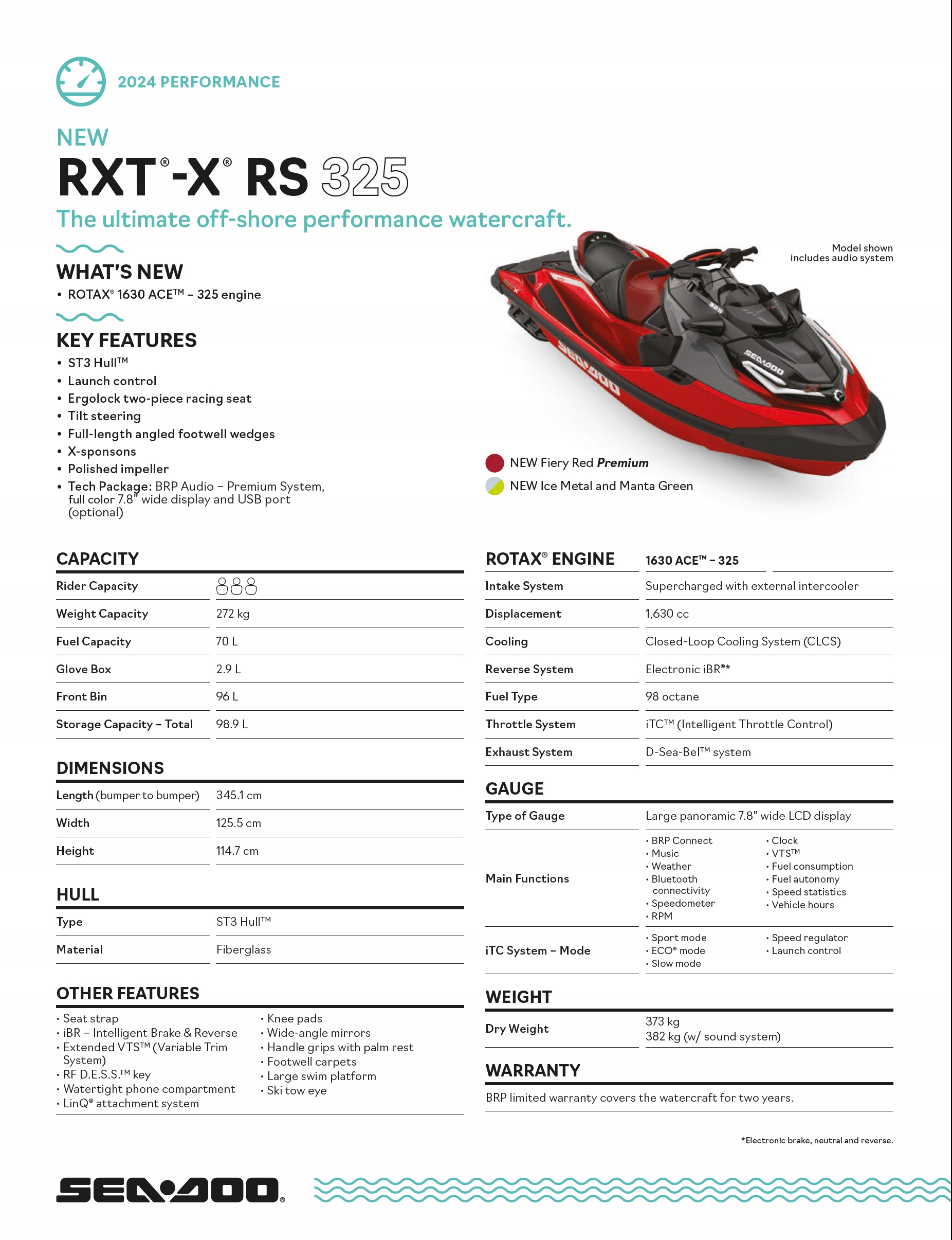 Skuter wodny Sea Doo RXT X RS 325 Audio Model 2024 WYPRZEDAŻ GWAR 36 M-CY