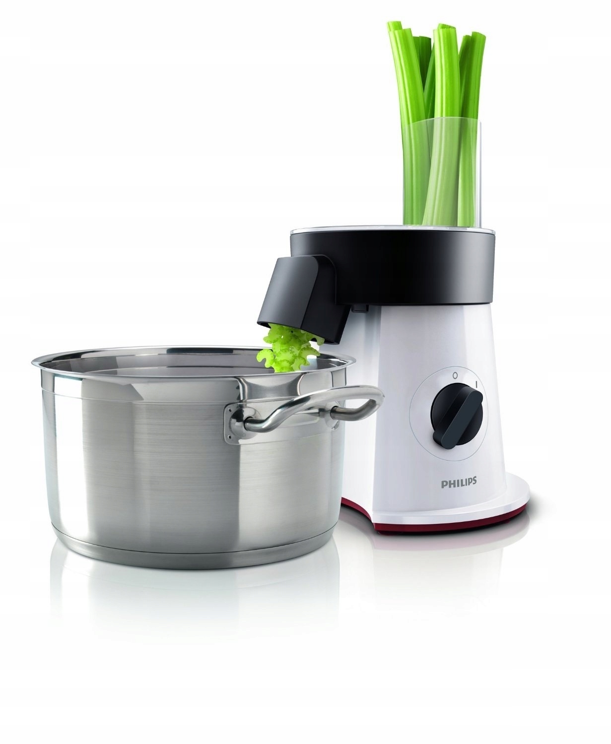 Функція готового до подачі салатника Philips дозволяє нарізати інгредієнти безпосередньо в миску, каструлю або вок. Високий носик дозволяє використовувати високі контейнери великої місткості, що означає менше посуду для миття після приготування їжі.