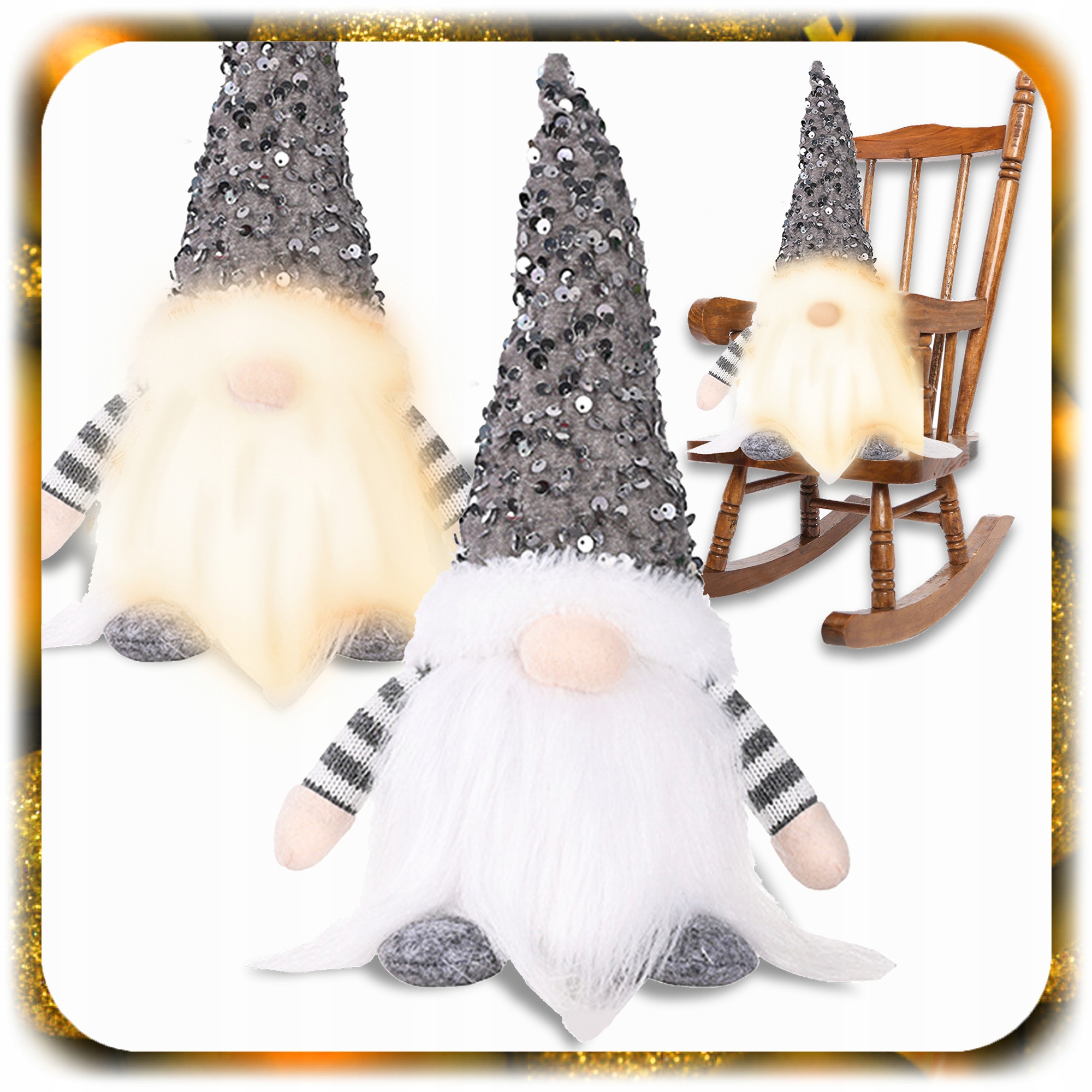 Оберіть сірого світлодіодного гнома з капелюшком з блискітками – стильний, міцний і чарівний символ свята.