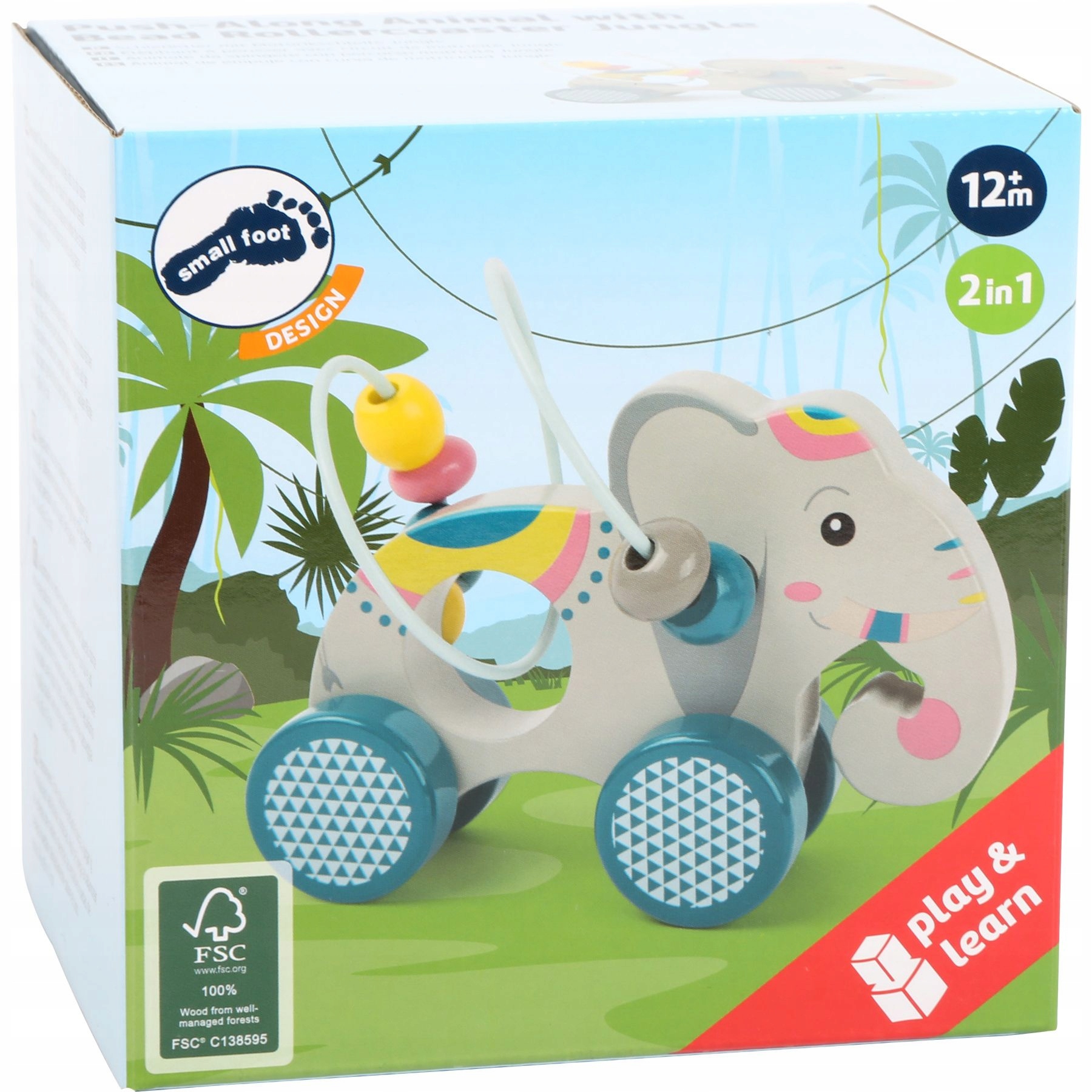 Цей гарно зроблений сірий слон, прикрашений кольоровими мотивами, має металеву петлю з різнокольоровими намистинами на спині. Їх можна пересувати вгору та вниз, доки триває петля. Тварина встановлена на 4 колеса синього кольору, тому ви можете швидко на ній кататися. Ця унікальна моторна петля розважатиме малюка надовго!