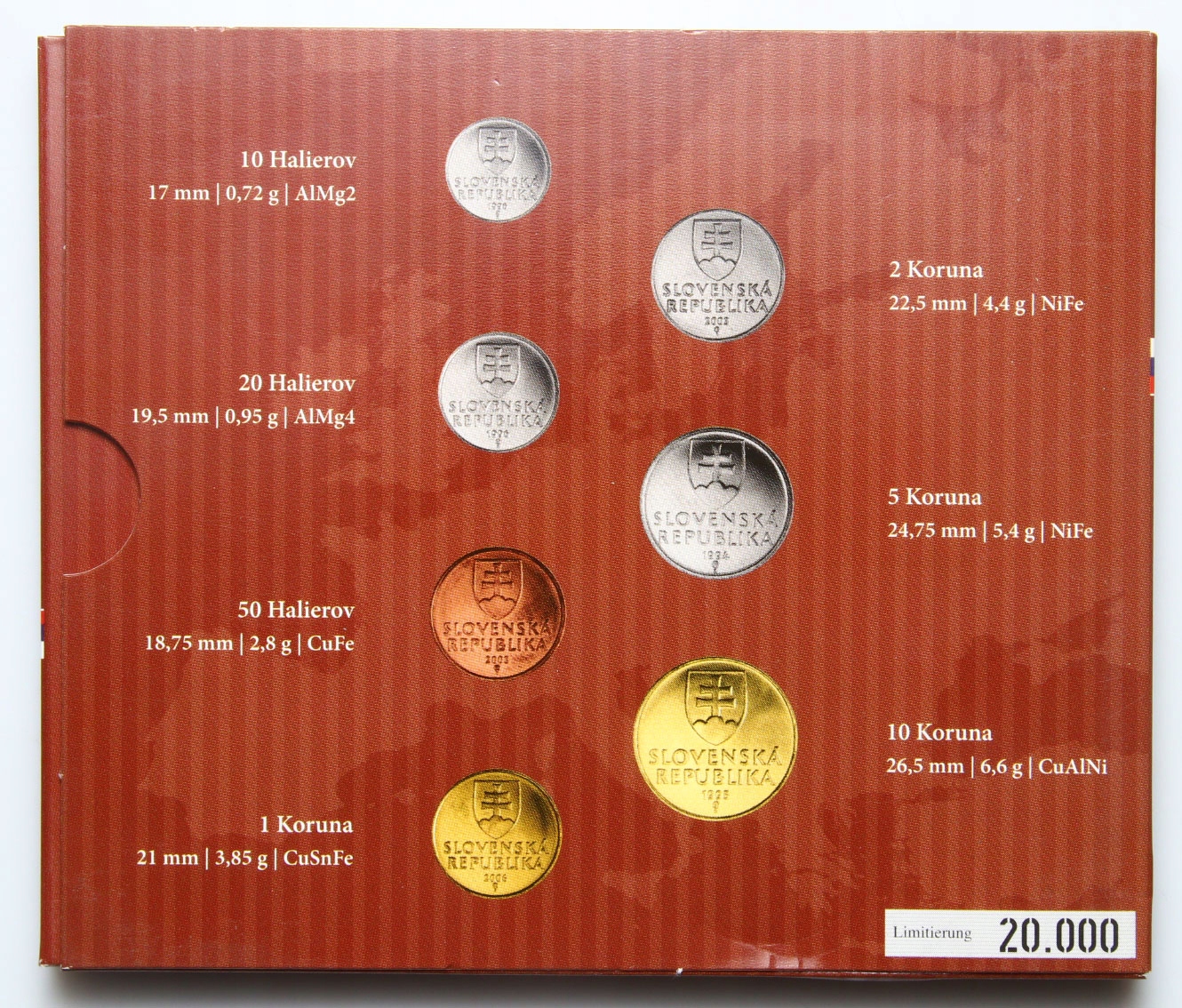 Словаччина - ОФІЦІЙНИЙ НАБІР монетного двору - 7 монет - стан монетного двору UNC