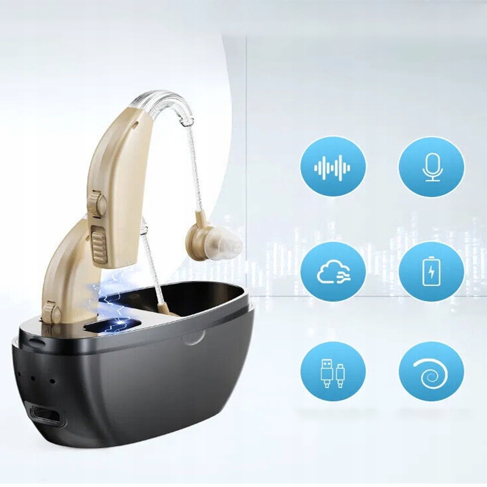 - 🛠️ Простота використання:Звукову трубку можна згинати та обертати на 360 градусів, що робить її зручною для носіння на лівому чи правому вусі. Виявлення у вусі автоматично вмикає та вимикає слуховий апарат, якщо його помістити у вухо.