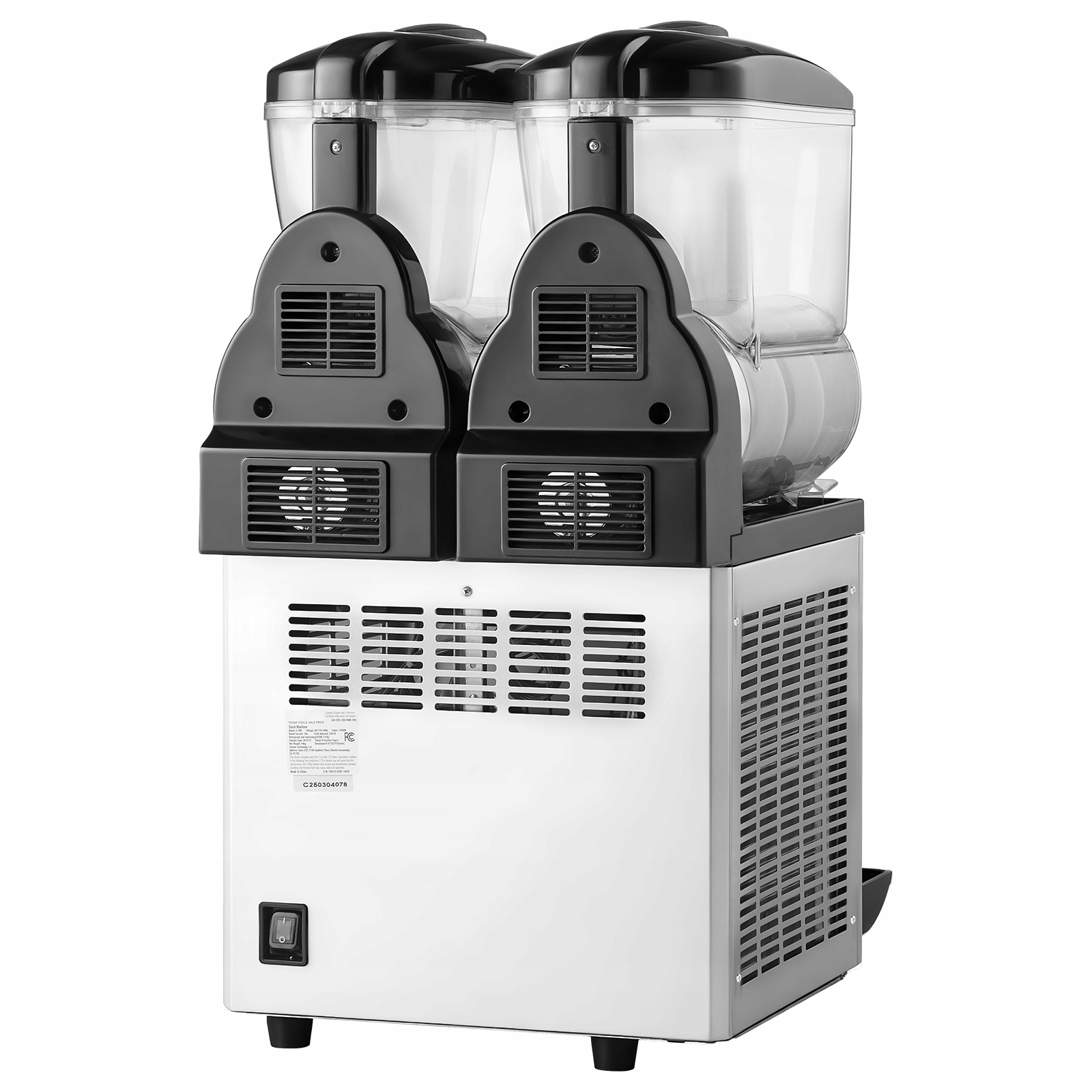 Завдяки двом резервуарам по 15 літрів кожна ця машина для подрібненого льоду може приготувати приблизно 120 чашок подрібненого напою за раз. Ви можете використовувати кожен резервуар окремо (рекомендований вміст цукру: приблизно 13%, вміст алкоголю: менше 13%). Його потрібно рідше заправляти, тому він ідеально підходить для комерційного використання, обслуговуючи велику кількість клієнтів. Прозорий резервуар дозволяє подавати різнокольорові напої, що робить його ідеальним для кафе-морозива, бургерних, кафе, барів та інших комерційних приміщень.