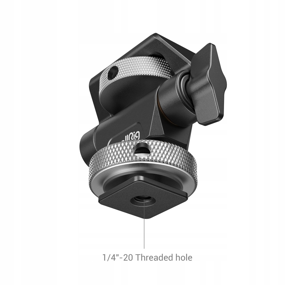 Поворотний тримач для монітора SmallRig із нахилом і кріпленням у холодному башмаку 2905 призначений для кріплення вашого монітора для зручного моніторингу. Він поставляється з нижнім холодним башмаком для гарячого башмака вашої камери, клітки або кріплення, а також верхнім гвинтом 1/4"-20 для монітора, мікрофона, світла тощо. Кріплення можна нахиляти на 180° і повертати на 360°. Його вісь нахилу швидко затягується за допомогою ручки, щоб відповідати різним вагам, і має перевірену міцність, при цьому навантаження на нахил зменшується не більше ніж на 20% після 10 000 нахилів, а вісь обертання можна регулювати на 360° за допомогою шестигранного ключа. -навантажені фіксуючі штифти вгорі допомагають закріпити Ninja V/V+, а різьбові отвори 1/4"-20 знизу дозволяють приєднати Magic Arm 2070 тощо. Обидва гвинти мають отвори для шестигранного ключа для легкого складання та розбирання .