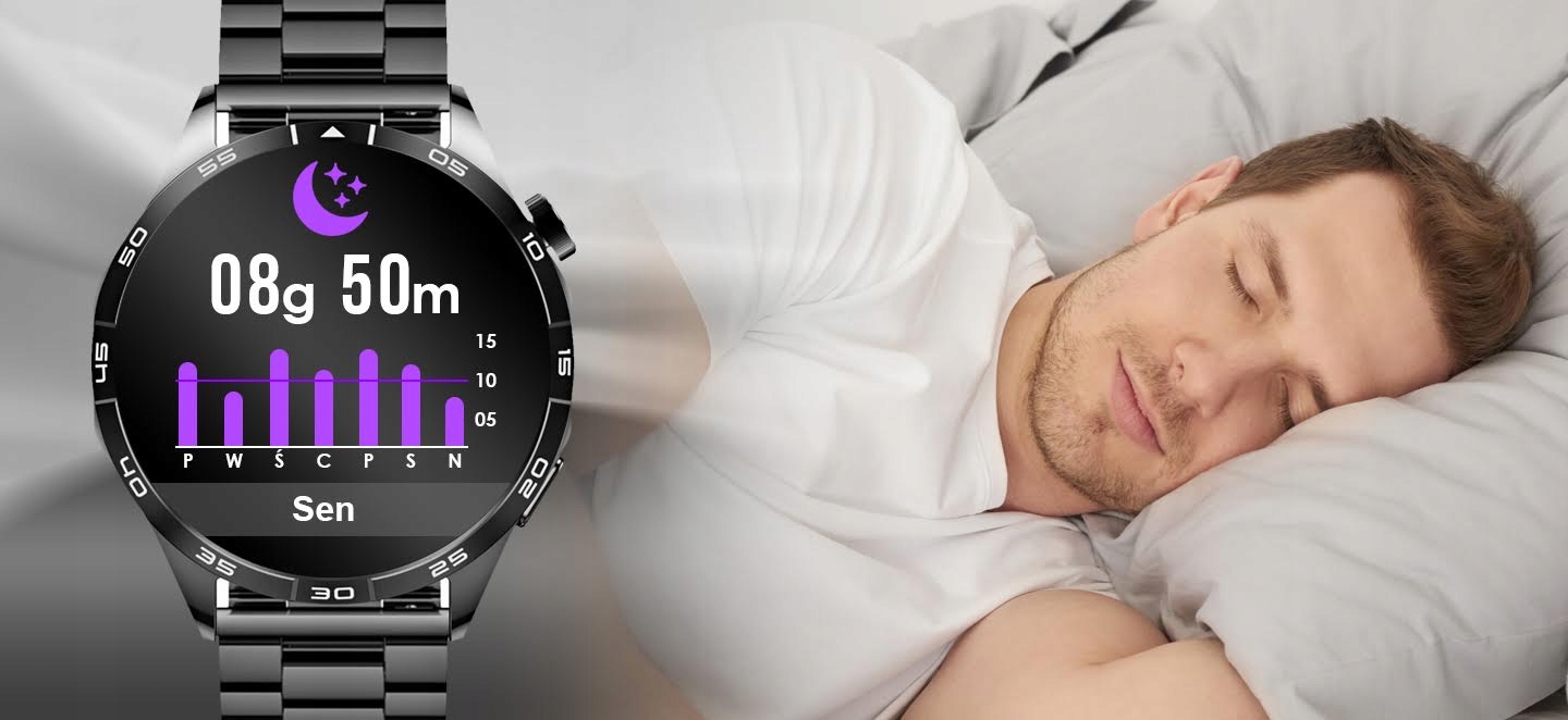- Смарт -годинник з функцією моніторингу сну відстежує та аналізує ваш нічний відпочинок . Автоматично записує час, щоб заснути і прокинутися, а також різні фази сну: світло, глибокий і рем. Завдяки цьому він надає повну інформацію про якість вашого сну, наприклад, тривалість індивідуальних фаз та загальний час сну.