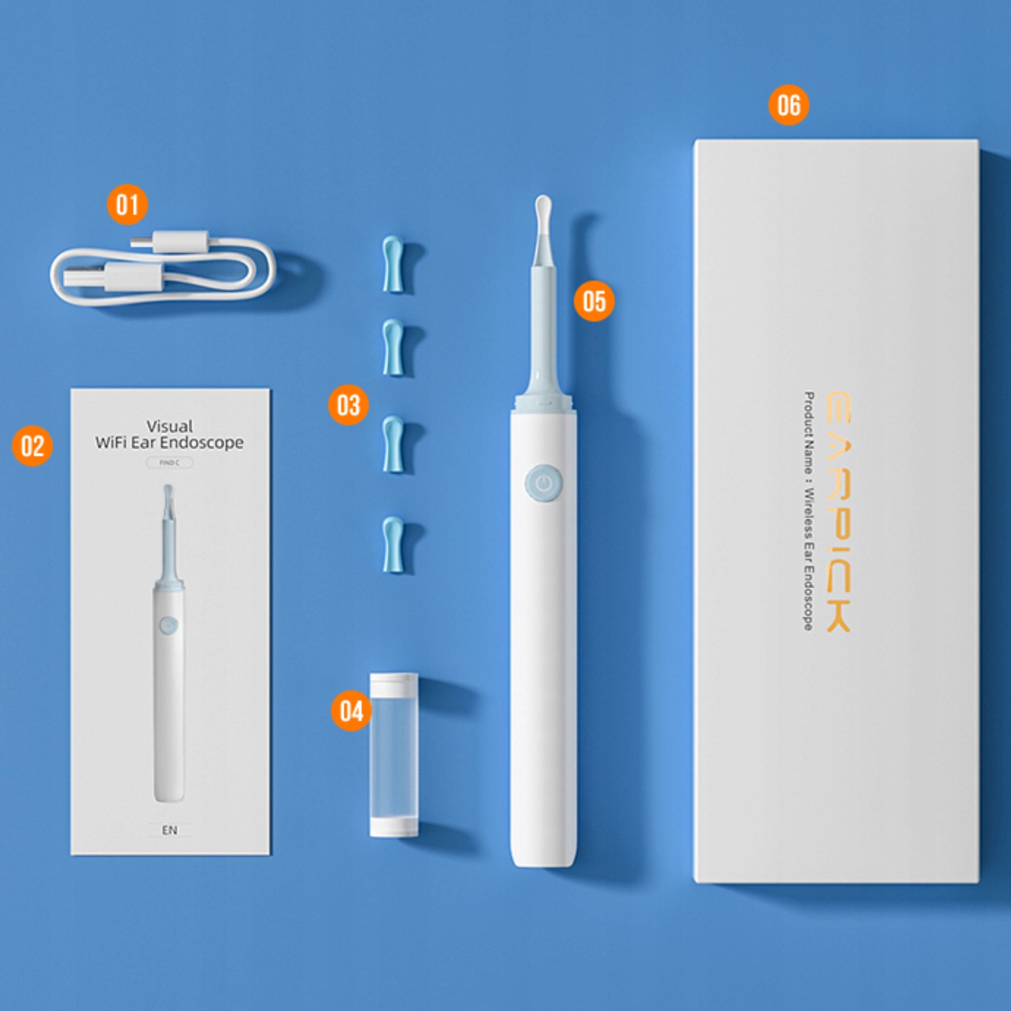 Прилад має 6 світлодіодних лампочок, які освітлюють внутрішню частину вуха під час обстеження, забезпечуючи кращу видимість. Завдяки світлодіодам діоди, навіть у важких умовах доступні ділянки вуха можна точно переглянути та оцінити стан вух, що забезпечує ефективне видалення бруду та сірки.