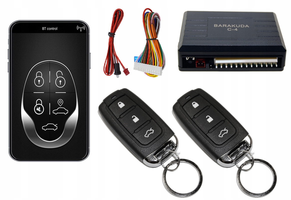 Універсальний контролер центрального замка BARAKUDA C-4 BLUETOOTH СМАРТФОН це найякісніший пристрій, що використовується для управління центральним замком, за допомогою телефону або дистанційного керування. (встановіть на свій смартфон безкоштовну програму BT CONTROL, що постачається разом із пристроєм, і з’єднайте її з блоком керування замком). З цього моменту смартфон виконує роль пульта дистанційного керування.