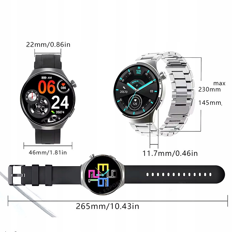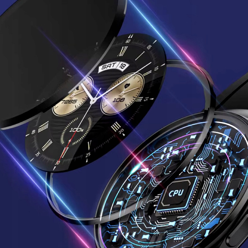 Ідеальне рішення для кожного спортсмена та багато іншого. Годинник, оснащений функціями термометра, крокометра, монітора серцевих скорочень, лічильника калорій, монітора сну за допомогою датчика G, обчислить довжину та якість сну. Функція тривоги, налаштування з програми Android або iOS, дозволить вам забути про муки звуків вашого застарілого будильника або гучного телефону. На годиннику прокидається екран після переміщення руки. Це смарт -годинник, який спонукає вас до збільшення або введення активістів